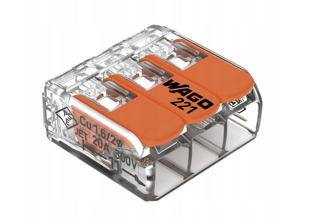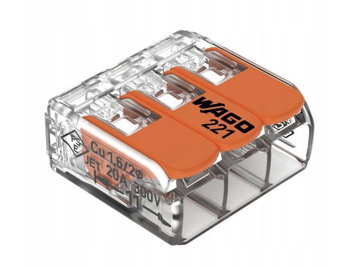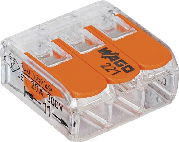 COMPACT-Verbindungsklemme für alle Leiterarten; 3-Leiter-Klemme; mit Betätigungshebeln; max. Umgebungstemperatur 85°C