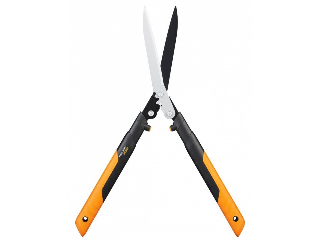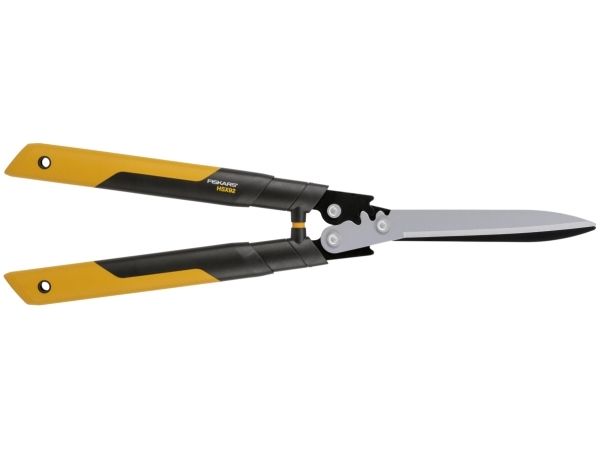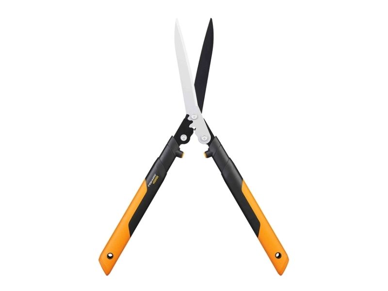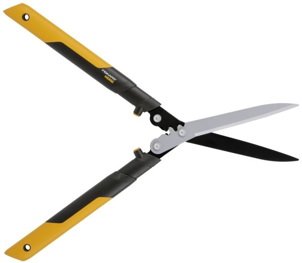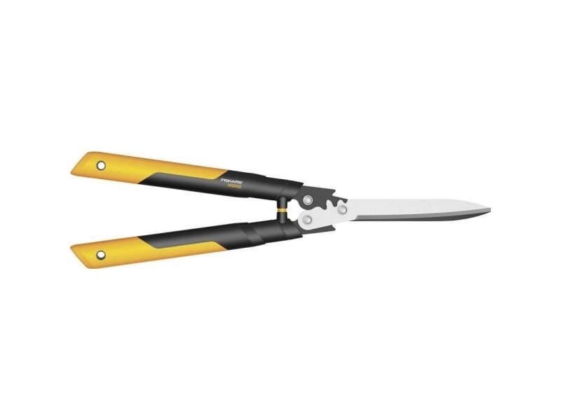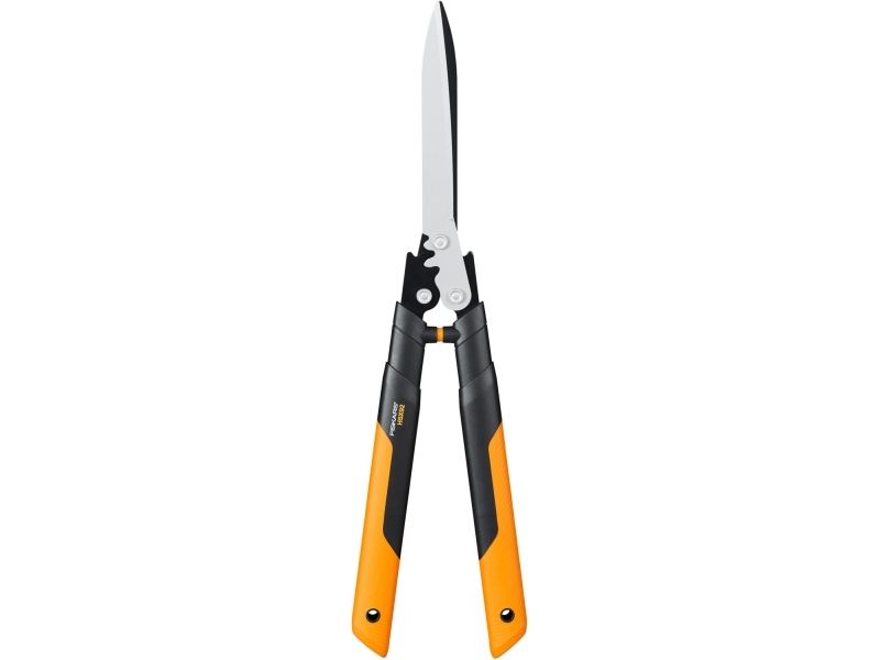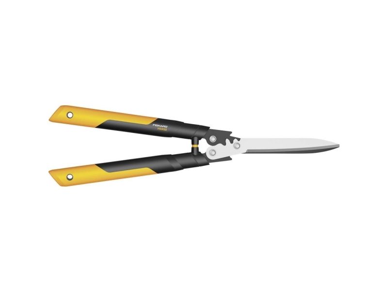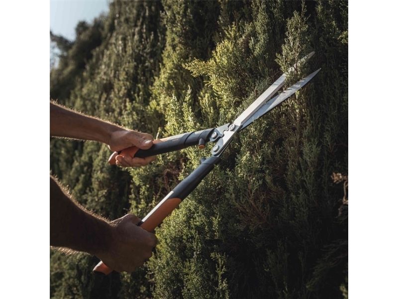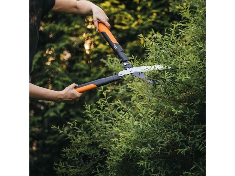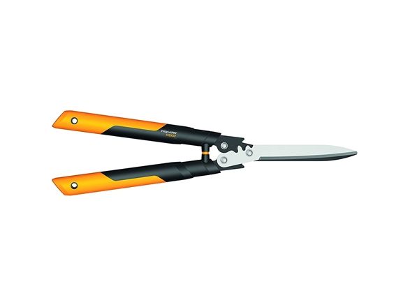 Die Fiskars PowerGearX™ Getriebeheckenschere bietet 3x höhere Schneidleistung durch den einzigartigen patentierten Mechanismus. Dazu kommen noch PTFE-antihaftbeschichtete Klingen aus hochwertigem Stahl zur Reibungsreduzierung. Die Edelstahlklingen werden ergänzt durch einen wetterfesten, leichten und dennoch unglaublich stabilen Aluminiumstiel. Sein SoftGrip-Material und die 3-D-Kontur erfordern weniger Kraftaufwand beim Halten.