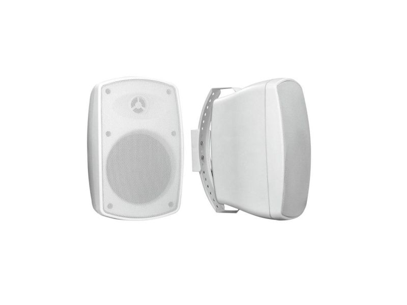 The weatherproof speaker pair OD-4 (IP65) is ideally suited for your indoor and outdoor sound systems. The 8-ohm PA speakers have a 10 cm woofer and a 1.5 cm tweeter. The plastic cabinet is equipped with a metal grille and covers over the connections.
