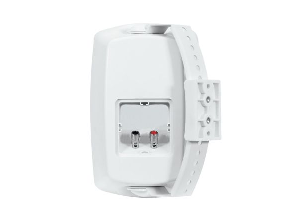 The swivel and tilt mounting bracket allows you to mount the speakers on the wall or ceiling at any angle. The connection is made via pole terminals.