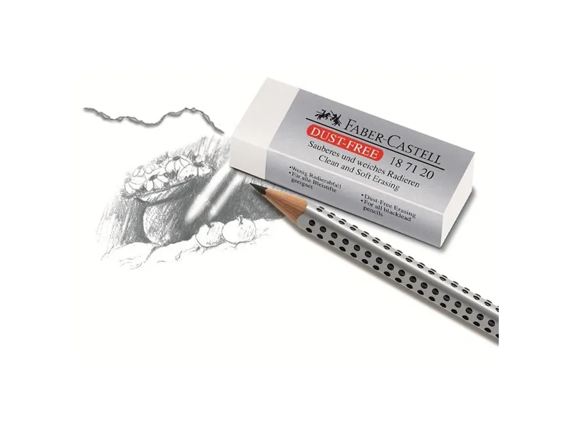 Faber-Castell DUST-Free eraser series for lead and color pencils cause less dust and do not contain harmful phthalate plasticizer. Phthalates have been reported to cause several undesirable effects when exposed to the human body. To date, phthalates are still commonly used to produce erasers around the world. The balanced plastic mixture guarantees soft and smear-free erasing.