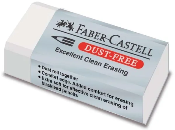 - Plastic eraser for clean and soft erasing - DUST-FREE: less eraser waste as the residue rolls together - Colour: white