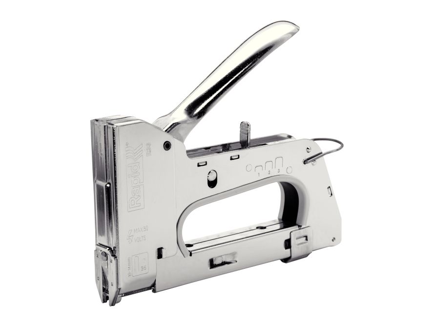 Robuste Kabelklammer aus Stahl zur Befestigung von Kabelinstallationen, geeignet für die Montage von Niederspannungskabeln bis 50 V und einem Durchmesser von 6 mm - z.B. Telefon-, TV- und Lautsprecherkabel.