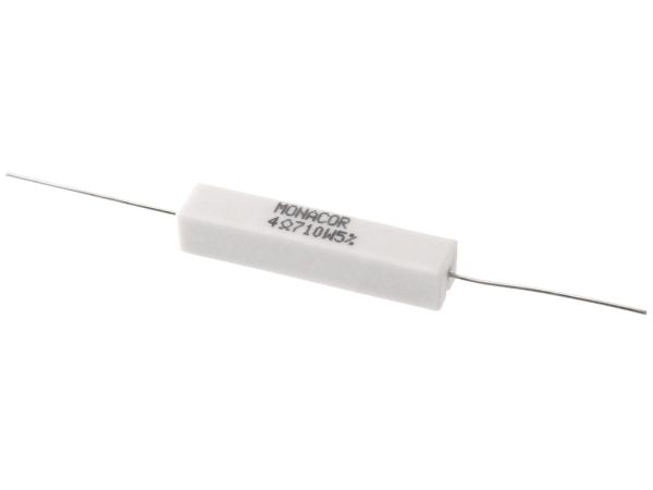 High-power cement resistor, 4.7 Ω, 10 W;Resistor for use in crossover networks, especially for PA and top hi-fi applications, also to be connected as load resistors.;Manufacturer information:;MONACOR INTERNATIONAL GmbH & Co. KG Konsul-Smidt-Str. 68 28217 Bremen Germany [email protected]