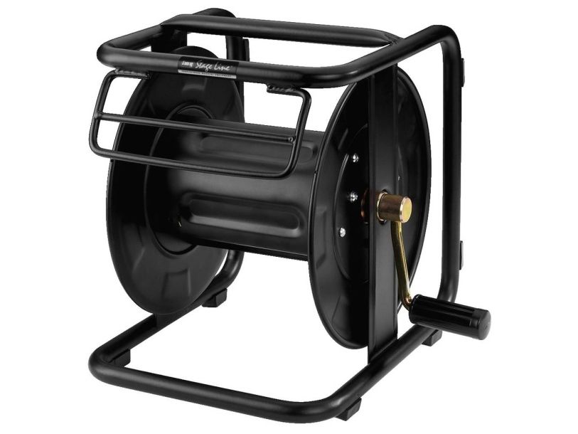 Professional empty cable reel,;for cable lengths of up to 50 m.;#Robust black lacquered version, suitable for stage applications;#Heavy-duty version of high stability due to steel tube cage-type base frame;#With cable guidance;#2 setup positions;#Metal reel Ø 240 mm, with crank handle;#Dimensions: 315 x 295 x 300 mm;#Weight: 3.04 kg;; Supplied w/o cable;The specified maximum cable length refers to standard microphone cables.;Manufacturer information:;MONACOR INTERNATIONAL GmbH & Co. KG Konsul-Smidt-Str. 68 28217 Bremen Germany [email protected]