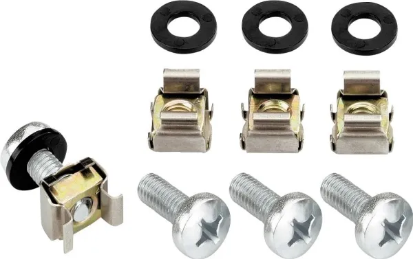 Set of cage nuts and screws,;For mounting 482 mm (19") inserts into racks and flight cases. The set consists of: 4 x M6 cage nut 4 x M6 x 15 mm recessed head screw 4 x plastic washer;Manufacturer information:;MONACOR INTERNATIONAL GmbH & Co. KG Konsul-Smidt-Str. 68 28217 Bremen Germany [email protected]