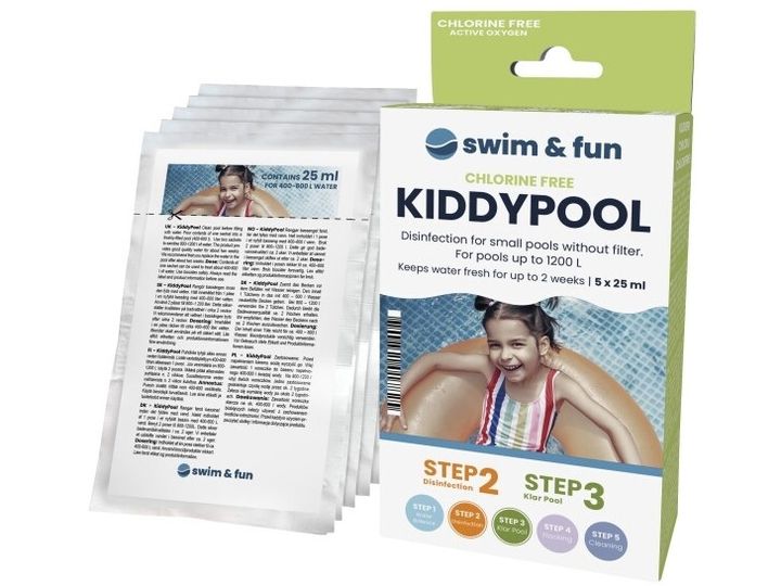 Unabhängig von der Größe des Pools ist es eine gute Idee, sicherzustellen, dass das Wasser gesund und einladend ist. In einem Planschbecken wird das Wasser schnell warm und bietet besonders gute Wachstumsbedingungen für Bakterien und Algen. KiddyPool Desinfektion ist einfache, chlorfreie Wasserpflege für Planschbecken.