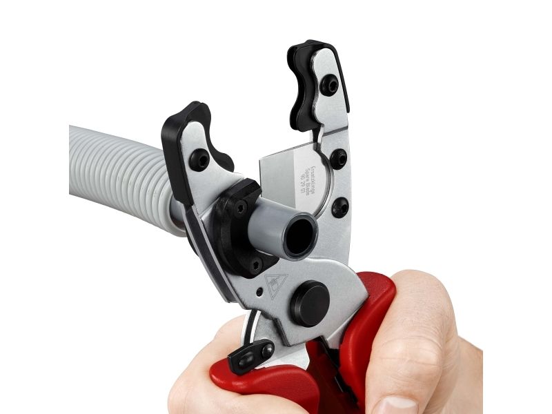 - for cutting composite pipes with diameters from 12.0 to 25.0 mm and for cutting flexible protective tubes with a diameter of 18.0 - 35.0 mm without damaging a potentially pipe inside - a calibration arbor can be fitted, for example for Geberit composite pipes with 11.5 and 15.0 mm dia. - tool body: high-grade chrome vanadium electric steel, oil-hardened - blades: special tool steel, oil-hardened, interchangeable