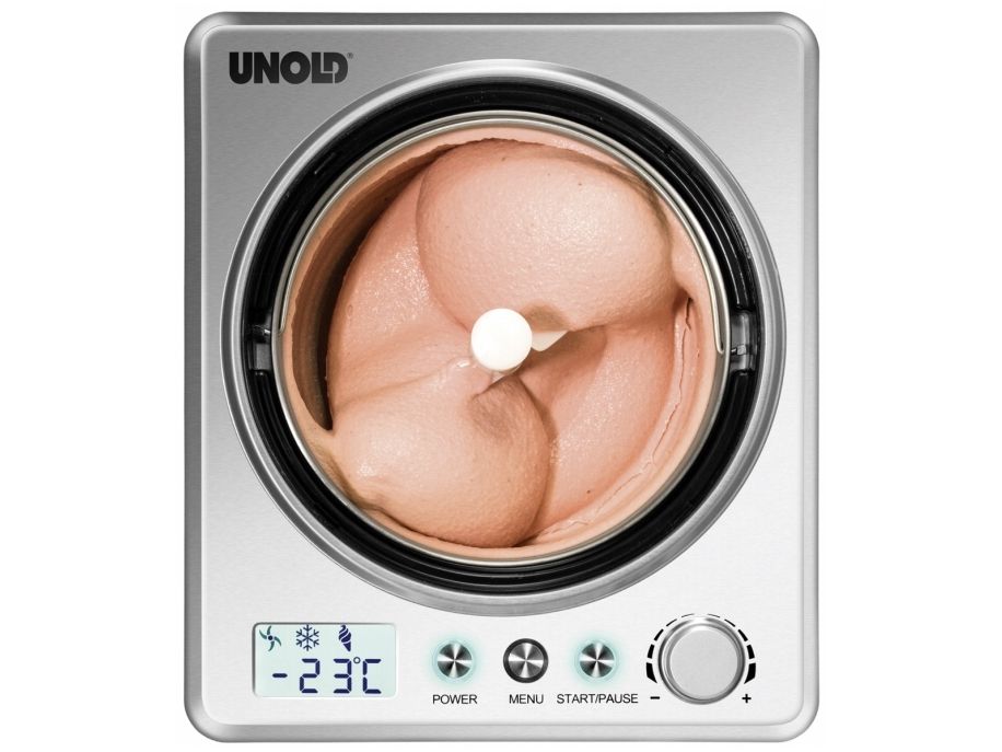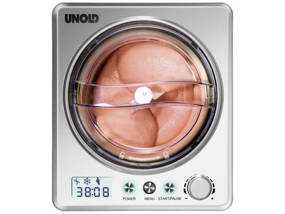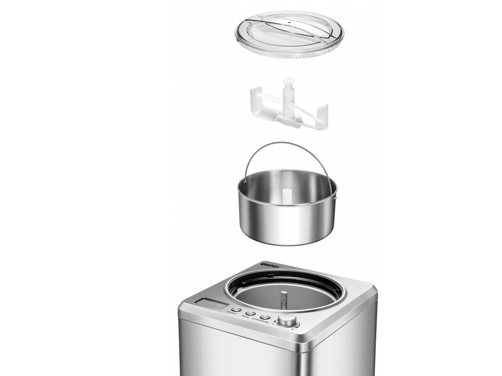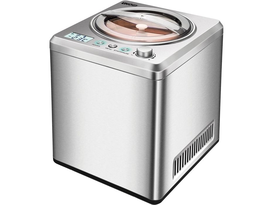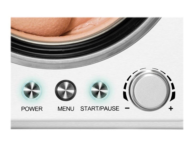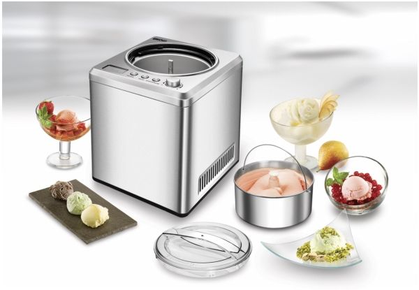 Melone oder Chili, Kirsch oder Kaffee ... wer Lust auf besonders kreative Eismischungen hat, für den ist die EISMASCHINE Exklusiv ein Muss. Bei der Auswahl der Zutaten sind wirklich keine Grenzen gesetzt. Und auch für veganes, laktosefreies oder steviahaltiges Eis, das es ja nicht überall gibt, ist die EISMASCHINE Exklusiv bestens geeignet. In nur 30 Minuten (bei vorgekühlten Zutaten) ist die leckerste Sahneeiscreme zubereitet. Der robuste Motor ist für den Dauerbetrieb geeignet, so dass auch ein „Nachschub“ kein Problem ist. Die EISMASCHINE Exklusiv überzeugt nicht nur optisch mit ihrem eleganten, modernen und robusten Edelstahlgehäuse. Die modernste Ausstattung macht die Eiszubereitung besonders einfach. Der vollautomatische, selbstkühlende Kompressor sorgt für eine kontinuierliche Kälteerzeugung. Das große LCD-Display zeigt die Restlaufzeit an. Besonders hilfreich sind der digitale Timer, drei Programme mit Zeitwahl und die einfach zu bedienenden Tasten.