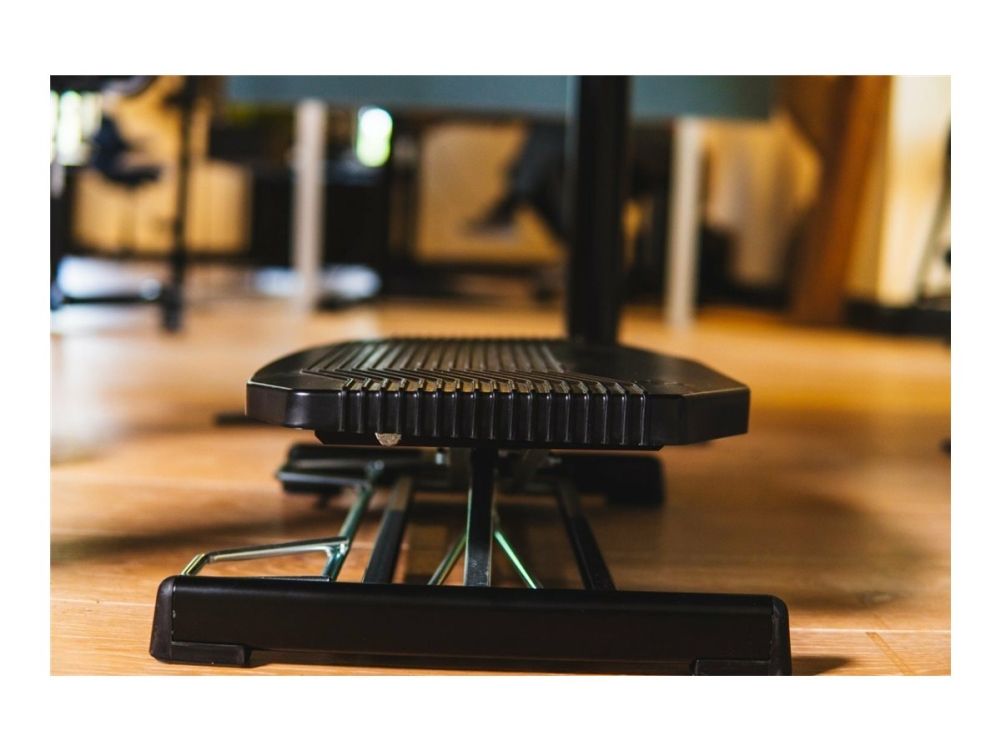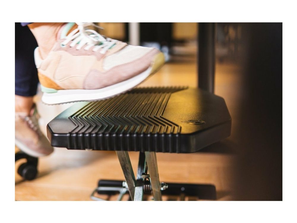 In addition, a footrest is sometimes used as a step-up aid when one works on a high desk chair, e.g. at a reception desk.