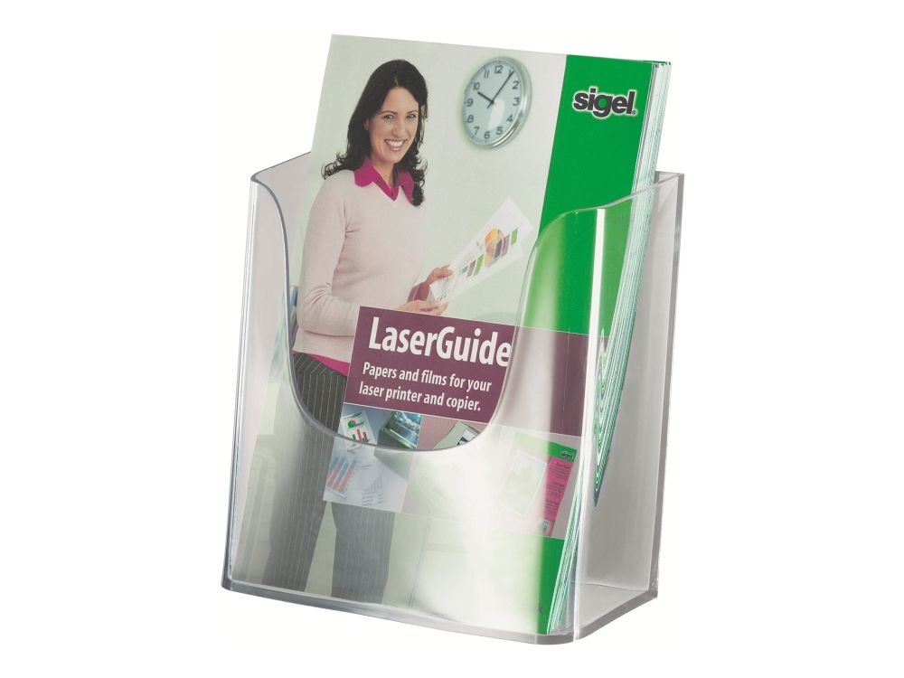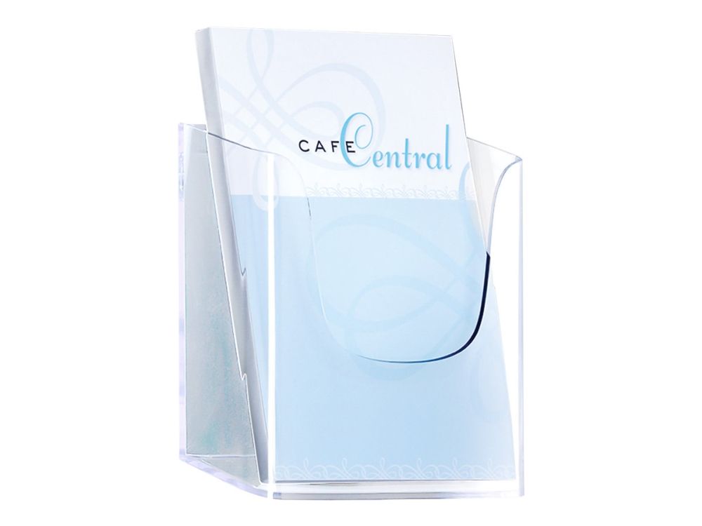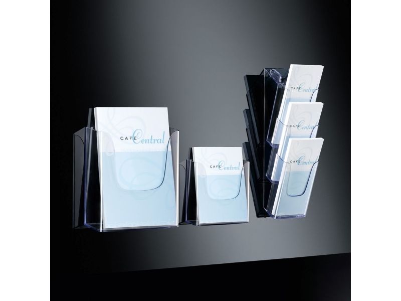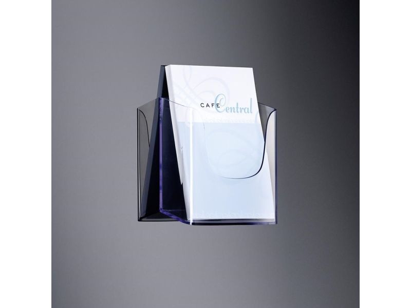 Wall-mounted literature holder with one compartment for material in the A5 format. High-quality, clear acrylic, 2 mm thick and therefore extremely stable. 25-year guarantee on the UV resistance of the acrylic. The wall-mounted literature holders can hold up to 45 mm of material. They have a slanted base, allowing the contents to slide forwards for easy removal. Mounting material is included. The product dimensions are 170 x 155 x 55 mm (w x h x d).