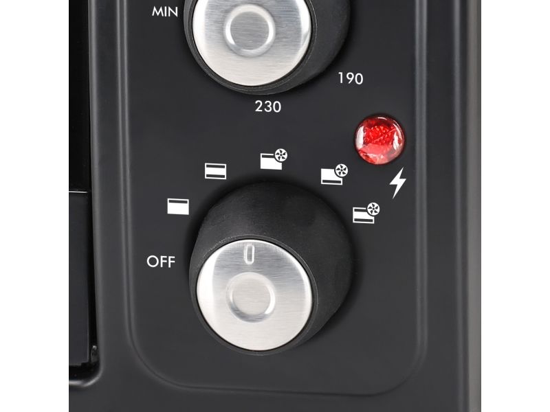 The Tristar Convection Oven can reach a temperature of 230°. Set the right temperature with the dial on the front of the oven. This way, you can bake a delicious pizza or crispy crusted bread. Choose upper or under heating with or without convection with the settings dial.
