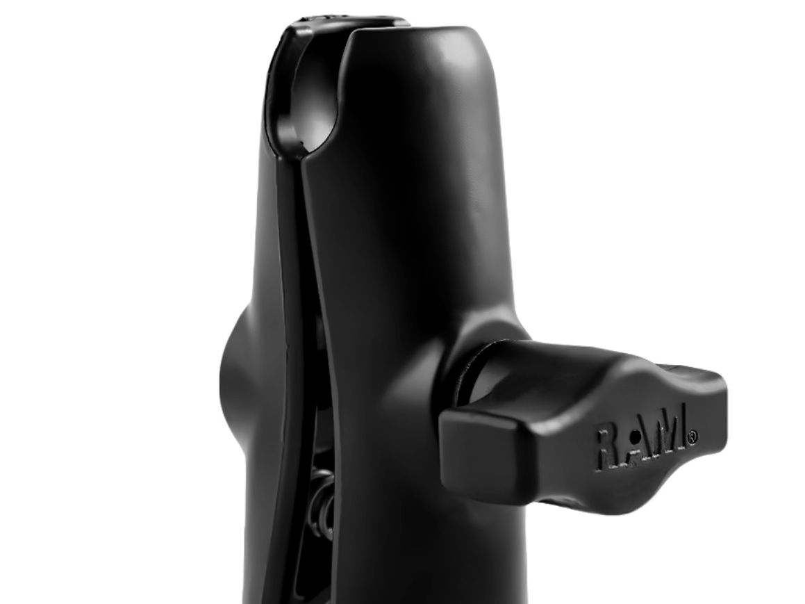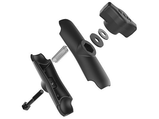 The RAM-B-201U, Medium length double socket arm, has a socket at both ends that accommodates B Size 1" balls. A single spring inside the arm, keeps the socket open, allowing you to incert the ball in to the socket connection. RAM's socket technology allows for almost infinite adjustment to achieve the perfect viewing angle.
