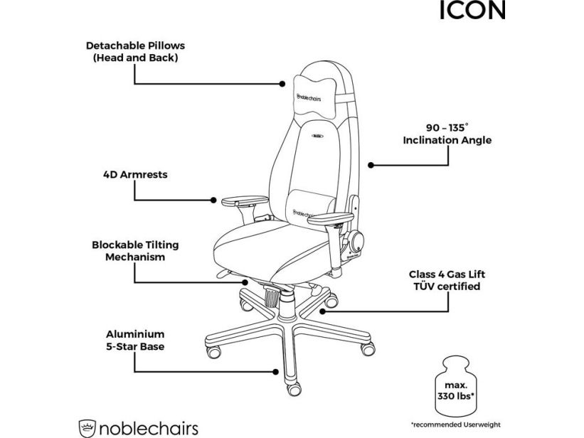 OPEN-CELL FOAM WITH OPTIMAL FIRMNESS Consisting of dimensionally stable cold foam and covered in ergonomically shaped upholstery; the basis of noblechairs is a solid, supportive, steel frame. The foam’s density of 55% allows noblechairs to retain its shape after prolonged use as well as to support higher body weights. The open-cell foam is ergonomic, breathable and controls climate regulation as well.
