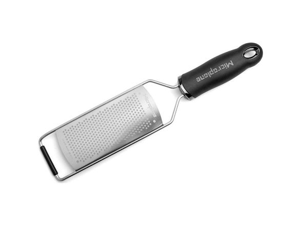 The Microplane Gourmet Series with its timeless design fits seamlessly into the product range. Due to the sharpness of the photo-etched blade, the food is cut precisely without being crushed and the foods natural aroma and flavor are brought out. The ergonomic soft-touch handle and the rubber foot ensure a firm hold and a flexible handling.