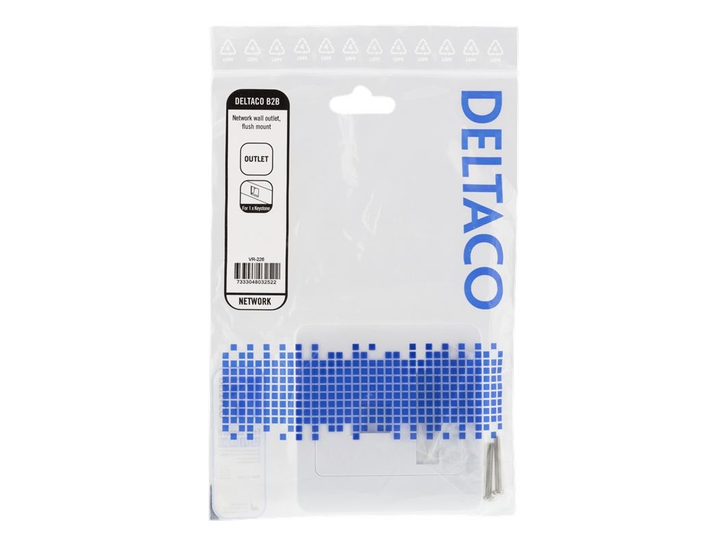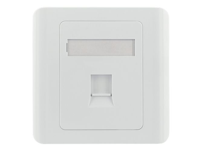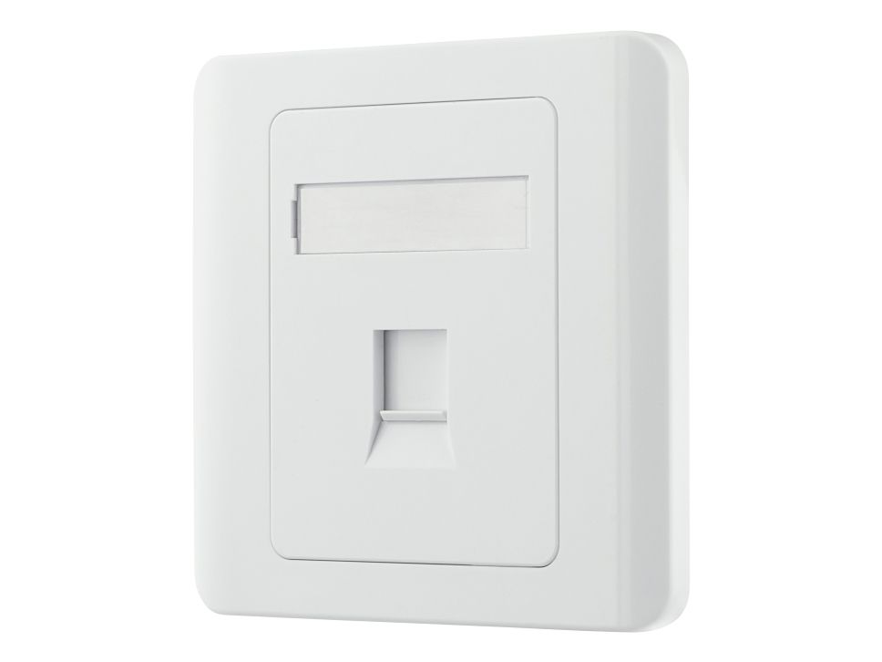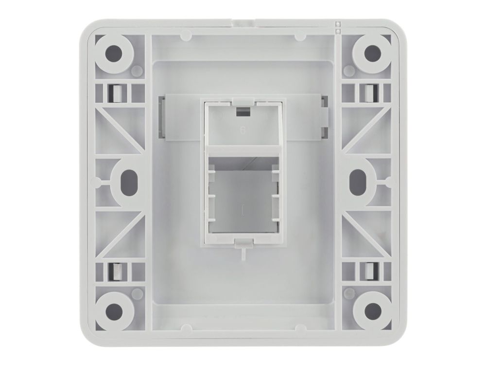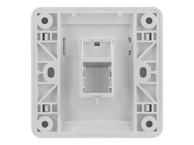 A Keystone flush mount that fits in units with c-c 60mm screwing. Can also be mounted in socket strips and boxes with c-c 68mm corner screwing.
