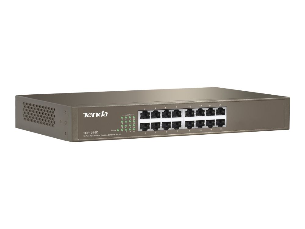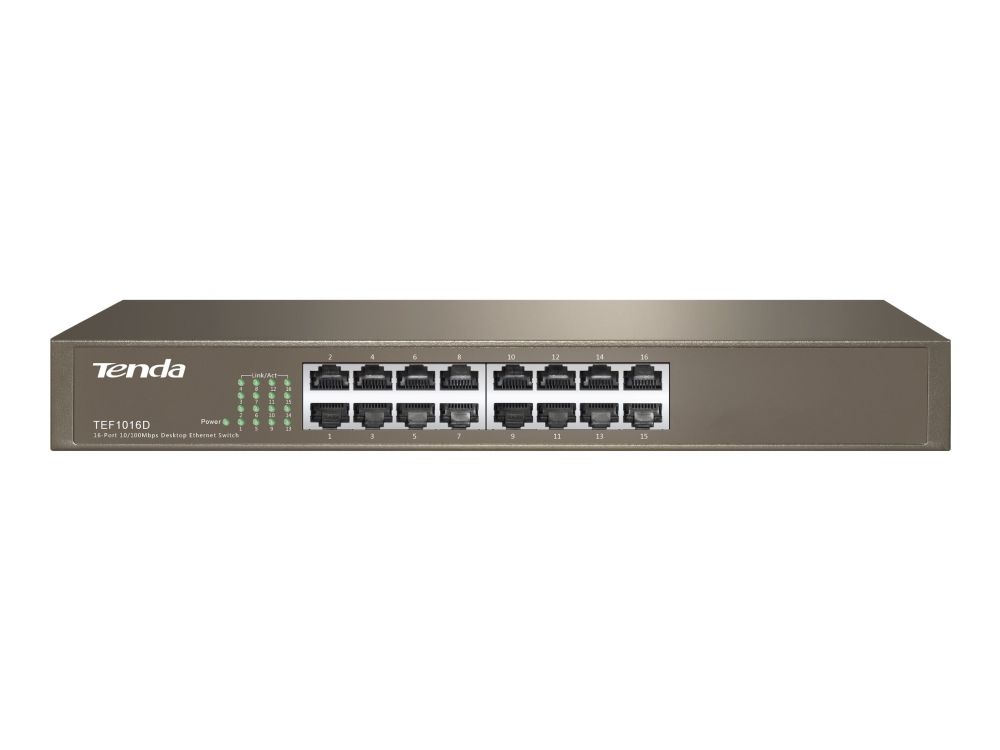 What It Does The Tenda TEF1016D 16-Port 10/100 Switch is specially engineered to provide simple solution to expand SMB networks and campus networks at the best possible cost. Connect this 16-port switch to a router and add up to twenty three more computers or other Ethernet-based devices such as a printer, Network-Attached Storage (NAS), or Internet camera to increase the functionality of your network. Housed in sturdy metal case, it is ideal for years of dependable use.