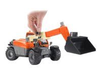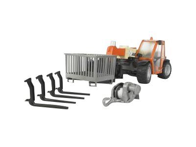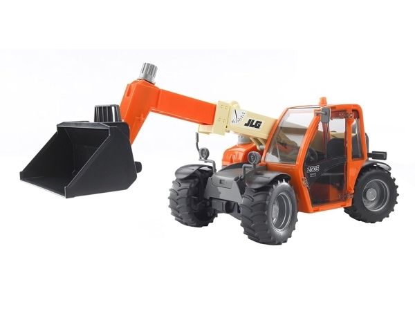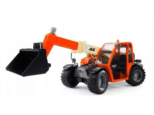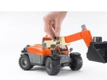 Artikelbeschreibung Der JLG Teleskoplader ist ein wahres Multitalent. Ob es um das Schaufeln von großen Erdmassen, oder um das Verladen von empfindlichen Gütern auf Paletten geht, jederzeit ist der JLG Teleskoplader ein zuverlässiger und effektiver Partner. Gerade seine geringen Abmessungen in Kombination mit dem weit ausfahrbaren Teleskoparm machen ihn oft zur ersten Wahl in den unterschiedlichsten Einsatzgebieten. Über vier silbern hervorgehobene Drehgriffe funktioniert die präzise Steuerung des JLG-Modells. Neben den Funktionen wie verstellen der Armhöhe, ausfahren des Arms und der Winkelverstellung der Werkzeugaufnahme verfügt der Teleskoplader über eine gut arbeitende Vierradlenkung. Diese Lenkung des JLG Teleskopladers macht das Handling des Fahrzeuges, sowohl beim Original, als auch bei dem Modell von BRUDER, zu einem Kinderspiel.