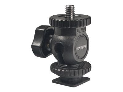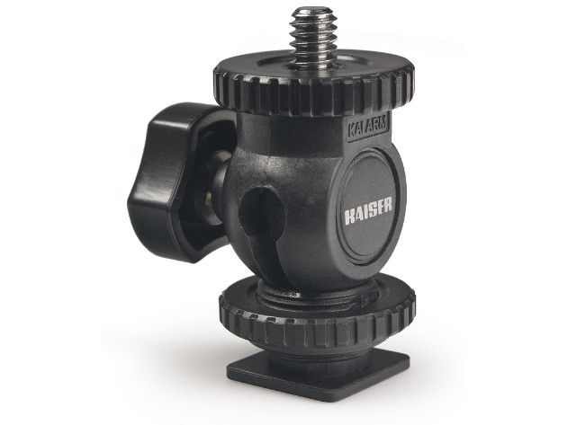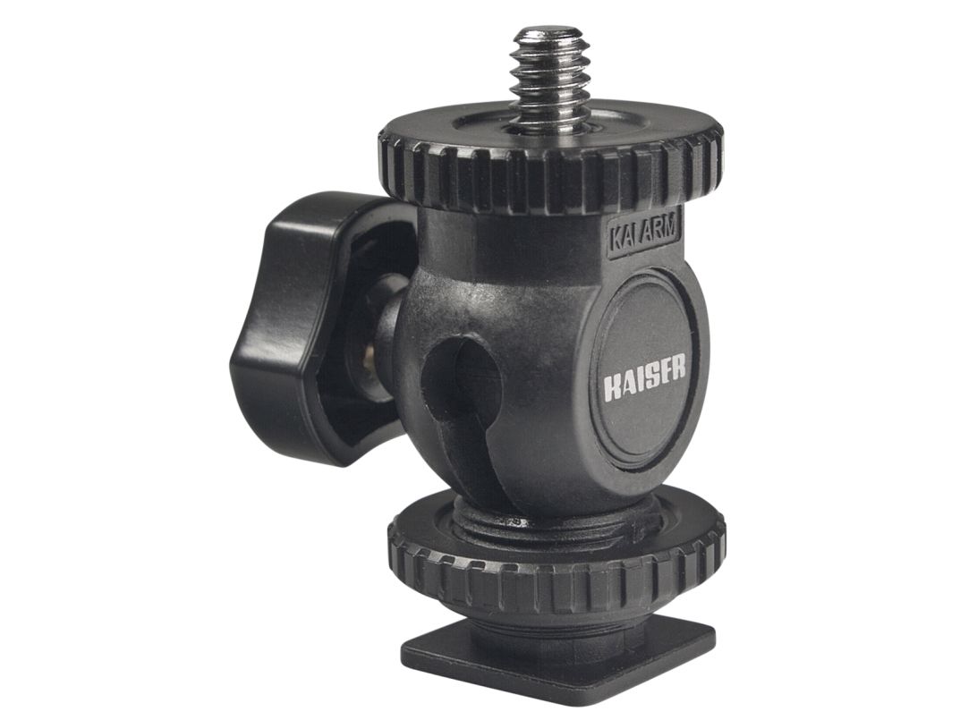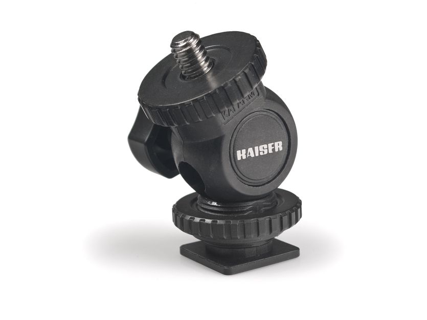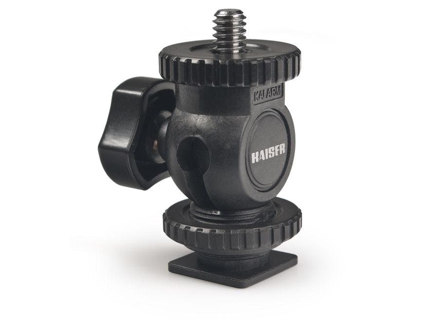Für kleine Leuchten, leichte Kameras, usw. Stufenlos bis 90° neigbar und 360° schwenkbar. Klemmung über eine gemeinsame Feststellschraube. Anschlussgewinde B 1/4. Befestigung im Zubehörschuh oder auf einem Stativ. Stativgewinde A 1/4. Konterringe für sicheren Halt.