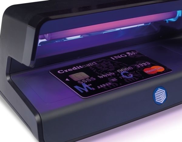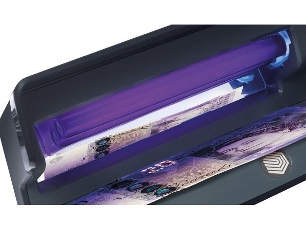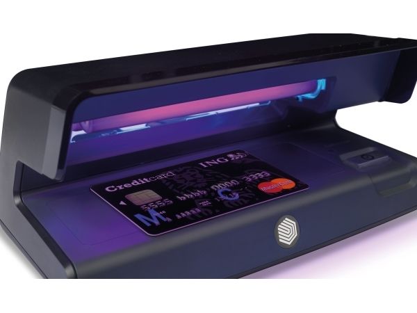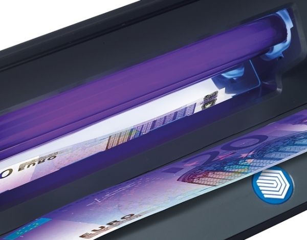 The powerful UV lamp verifies the UV features in banknotes, ID cards, credit cards and all other official documents.