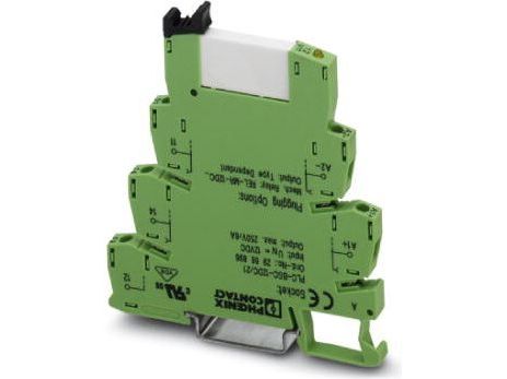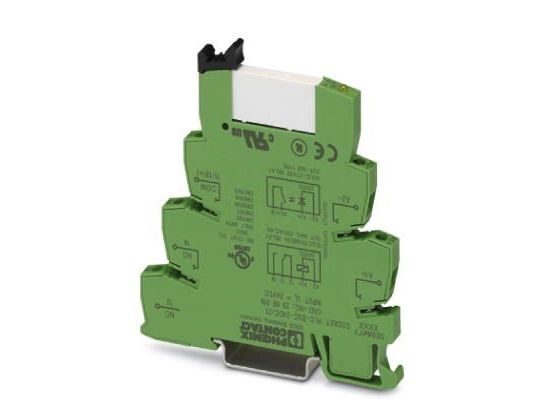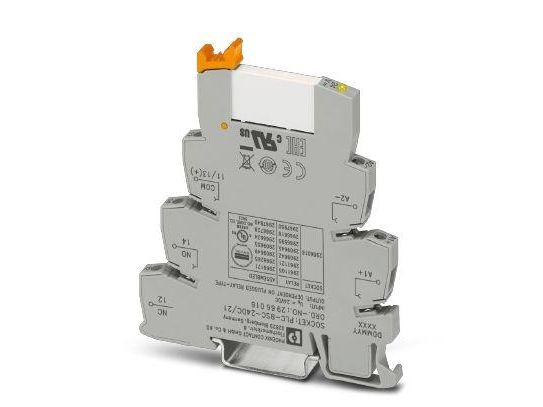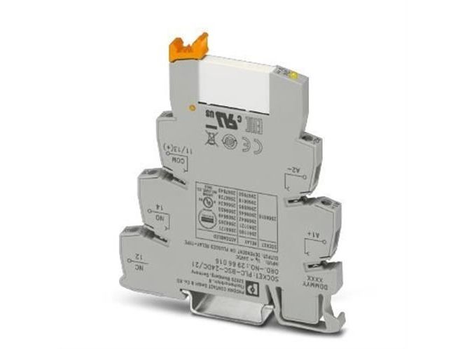 PLC-INTERFACE, bestehend aus Grundklemme PLC-BSC.../21 mit Schraubanschluss und steckbarem Miniaturrelais mit Leistungskontakt, zur Montage auf Tragschiene NS 35/7,5, 1 Wechsler, Eingangsspannung 24 V DC