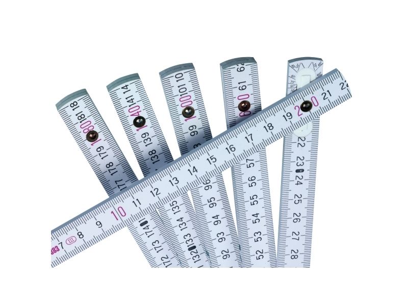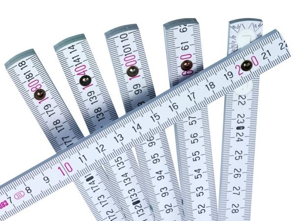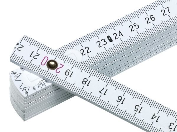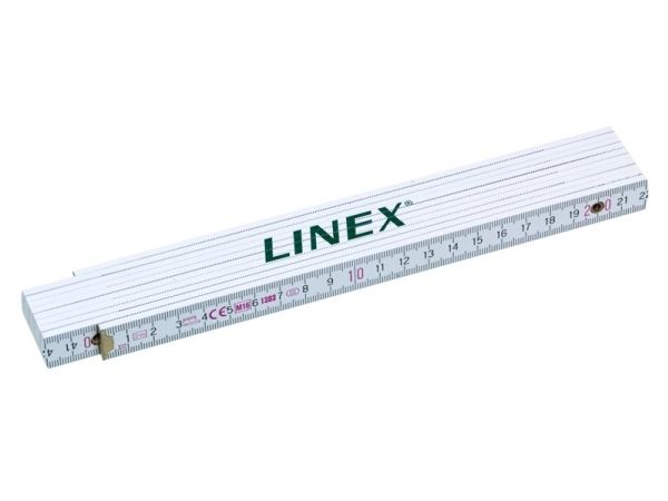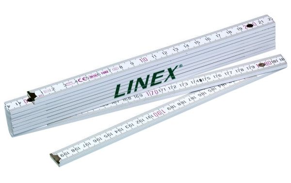 Tommestok, Linex. 2 Meter weißes Holzlineal mit Gradmessung an jeder Verlängerung.