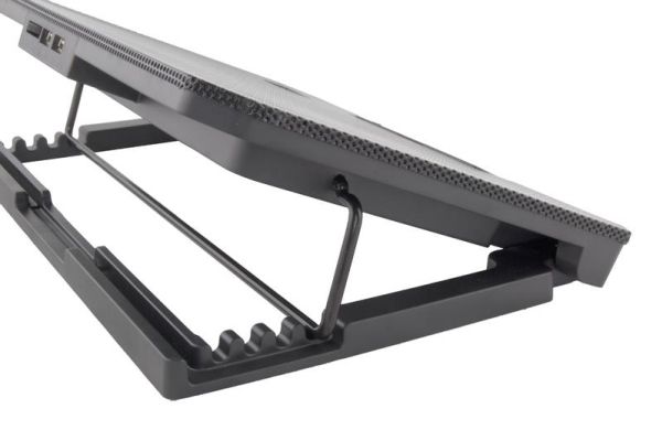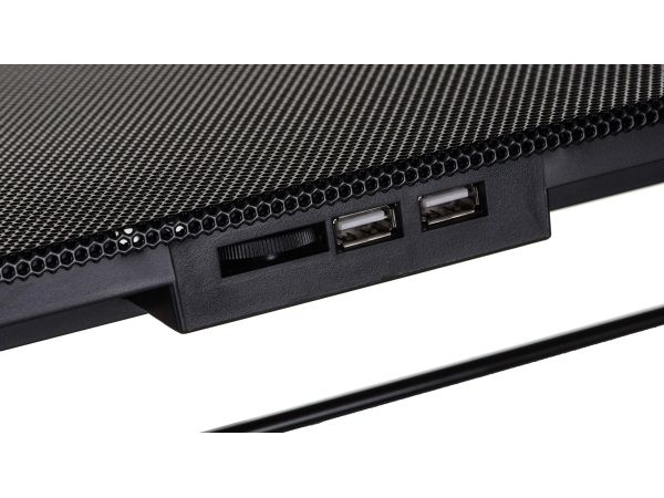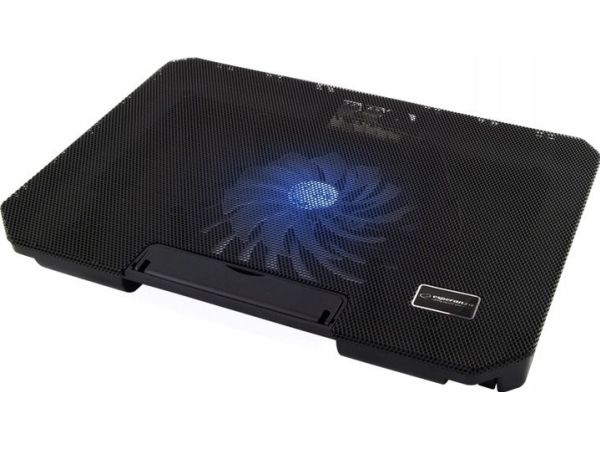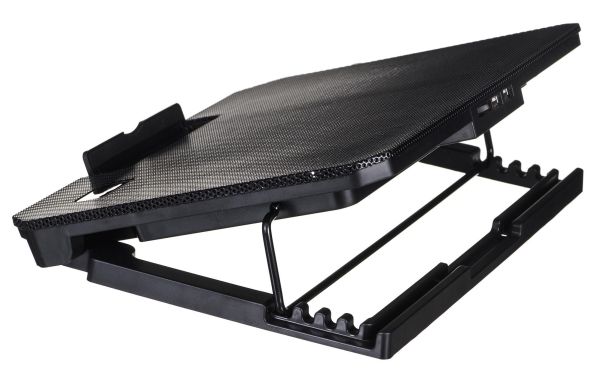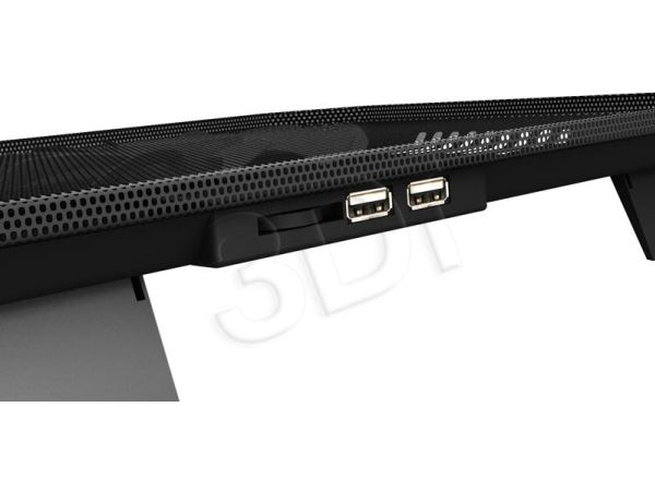 Notebook cooling pad with a modern, stylish shape. It has built a very quiet, backlit, big fan. It removes heat from underneath the notebook, cooling it and reducing the operating temperature of the components which ensures stable operation and longer battery life. Built-in 1-port USB 1.0 hub for easy connection of additional devices and does not take up space on the desk. Solidly constructed, durable design easily supports the weight of the notebook. It does not require an external power source - powered from the USB port of the notebook. On the side of a built-in power switch. No installation required. Durable, comfortable and easy to carry. Compatible with all types of notebooks.