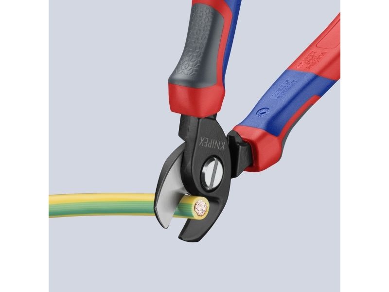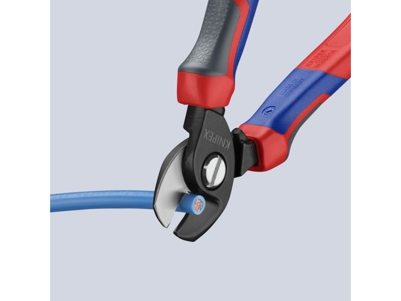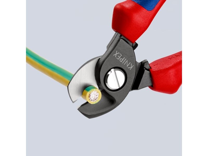 - for cutting copper and aluminium single conductors as well as multiple stranded cables - not suitable for steel wire and hard drawn copper conductors - precision ground, hardened blades - clean and smooth cut without crushing and deformation - easy cutting with one-hand operation - guard prevents operators’ fingers being pinched - adjustable bolted joint, self-retaining screw - High-grade special tool steel, forged, oil-hardened