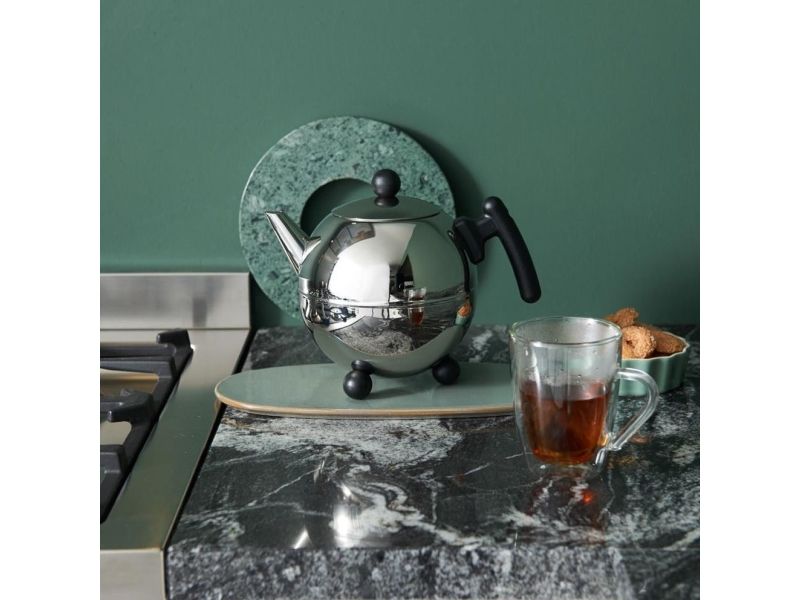 The Duet Bella Ronde is a real Bredemeijer classic! This famous spherical teapot already adorns countless kitchen and dining tables. The Duet Bella Ronde is made from high-quality stainless steel and has an insulating double wall, which helps to keep the tea hot and fragrant for up to as much as an hour (if the teapot is kept at least 90% full). The ergonomic handle and specially designed spout provide optimal convenience each time the tea is poured. The insulating material used for the handle and the grip on the lid see to it that those parts never get more than lukewarm.