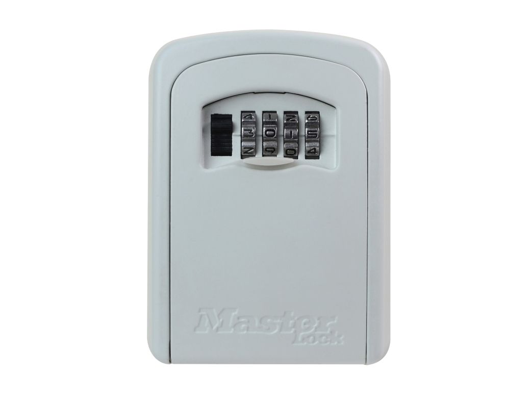The Master Lock No. 5401EURD Select Access key lock box features a 83mm wide metal body for durability and accepts multiple house keys. Stop hiding your keys under the doormat or under a flower pot: Select Access is the perfect solution to share access to your keys. The wall mount design offers permanent installation. Set-your-own 4-digit combination for keyless convenience and increased security. The shutter door protects combination dials from weather, dirt and grime.