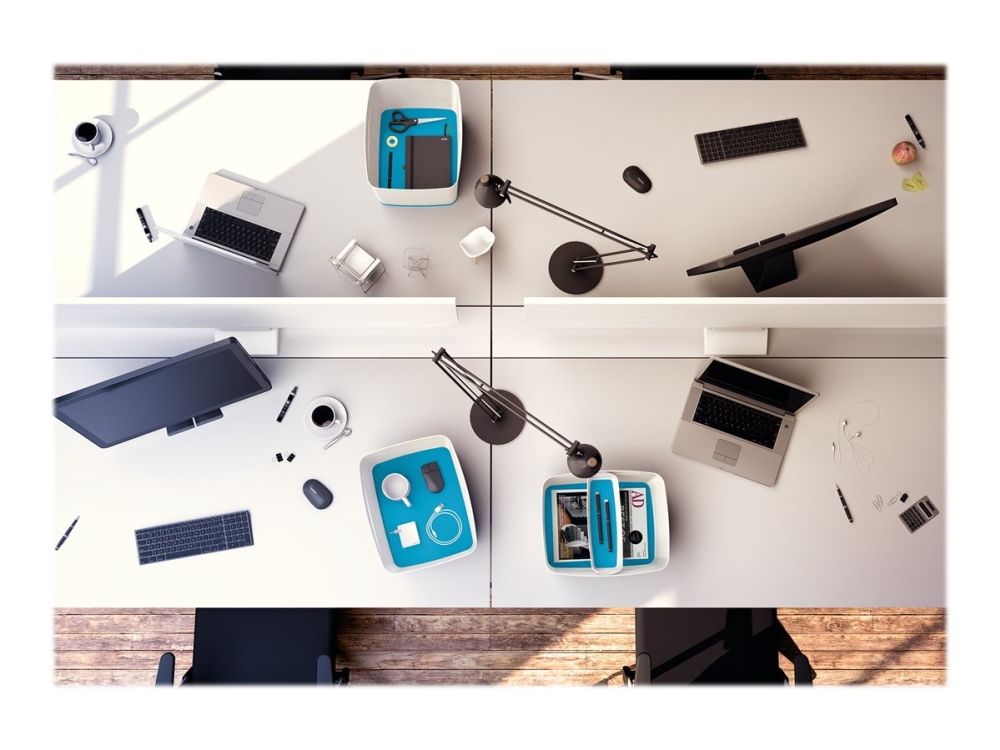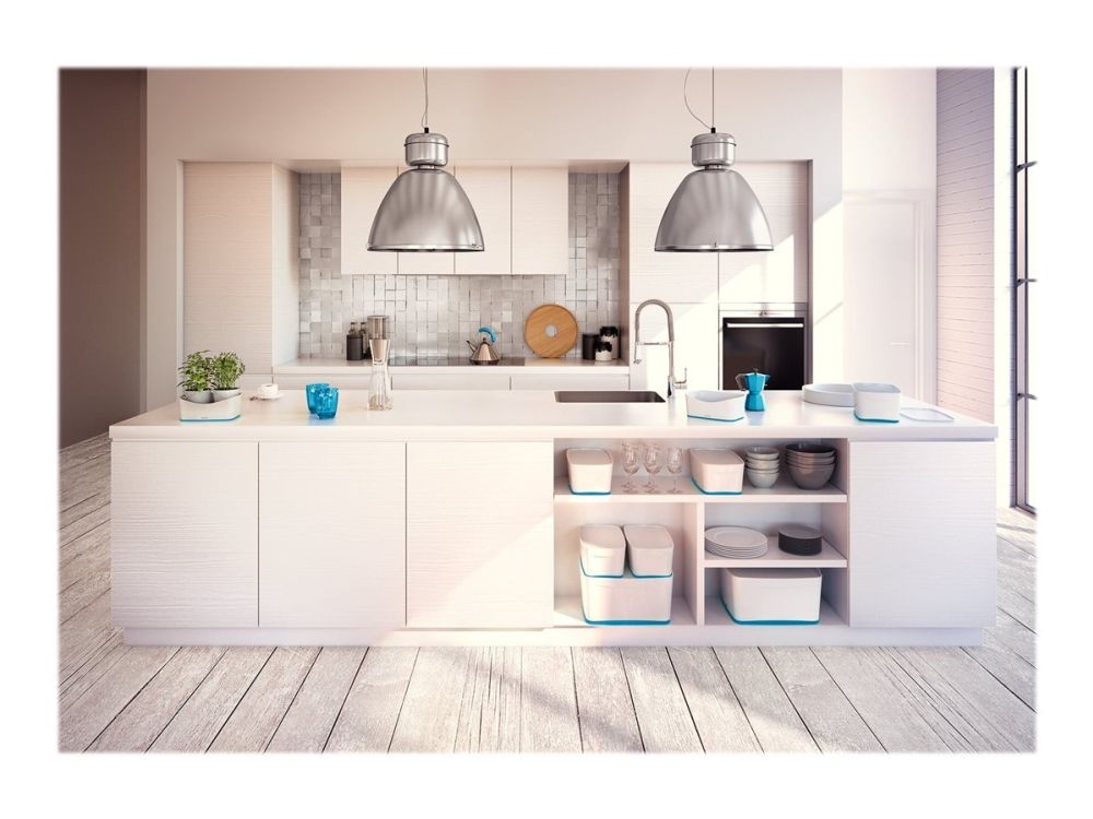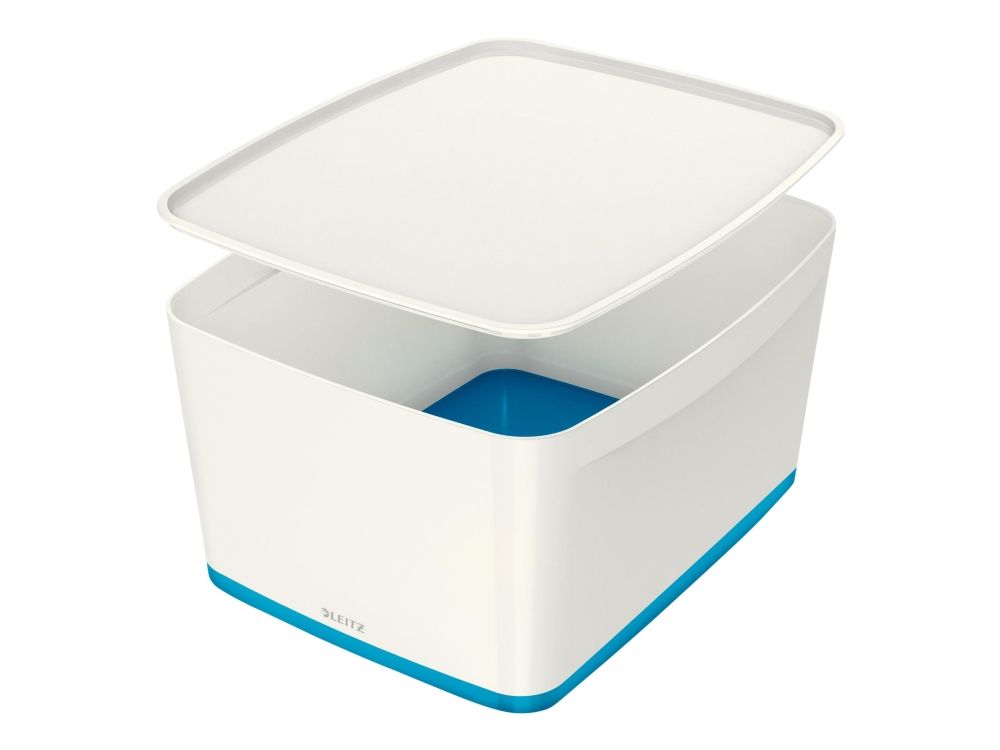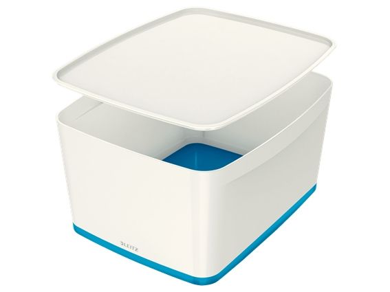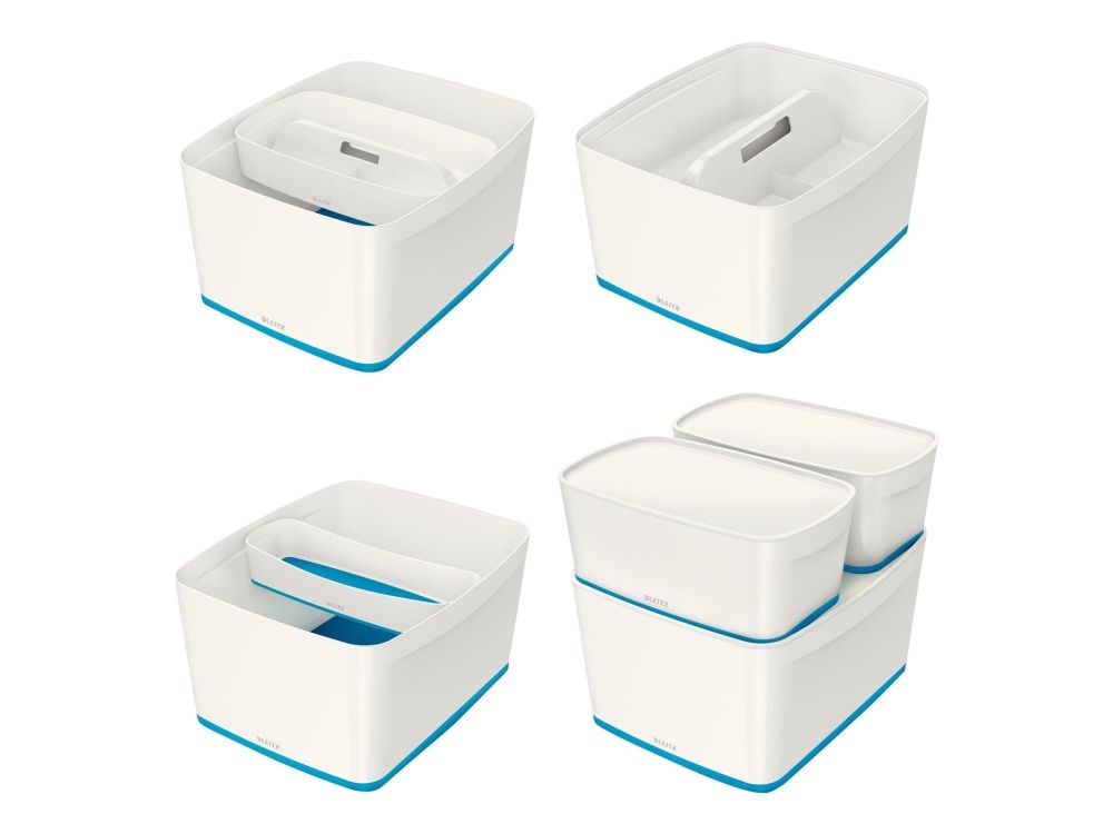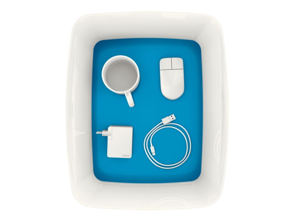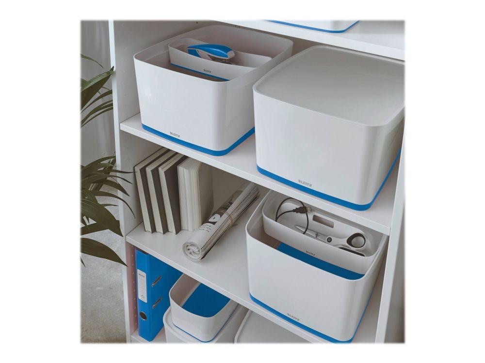 - Stylische Box in zweifarbiger Ausführung für eine schnelle und einfache Organisation und smarte Aufbewahrung - Bildet zusammen mit der länglichen Aufbewahrungsschale oder dem großen oder kleinen Organiser mit Griff das optimale Aufbewahrungssystem - Aus robustem, wasserdichtem ABS-Kunststoff (ohne BPA) für einen premium Look und optimalen Schutz des Inhalts - Platzsparend: Zwei Leitz MyBox Klein passen im Standardregal auf die Leitz MyBox Groß - Deckel bleibt dank diskreter Einrastfunktion stets am Platz und lässt sich dennoch leicht öffnen - Wenn nicht gebraucht, können die Boxen platzsparend ineinander gestapelt werden - Dank weicher abgerundeter Ecken leicht zu reinigen
