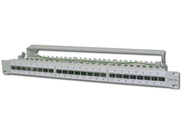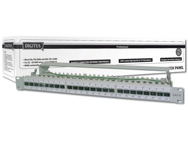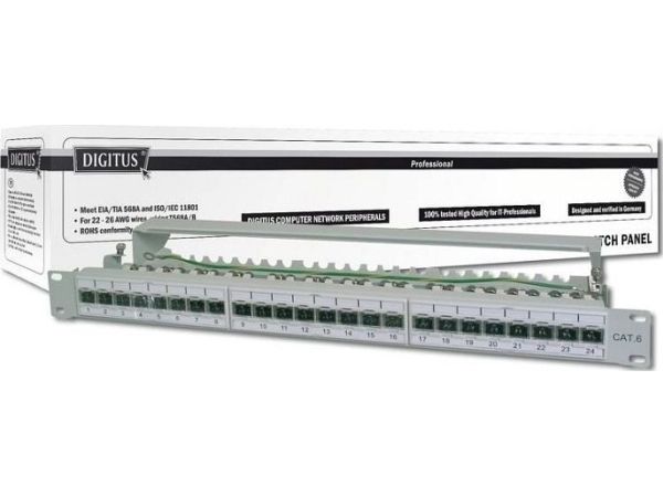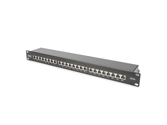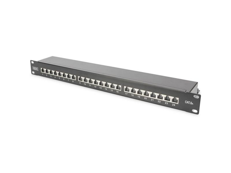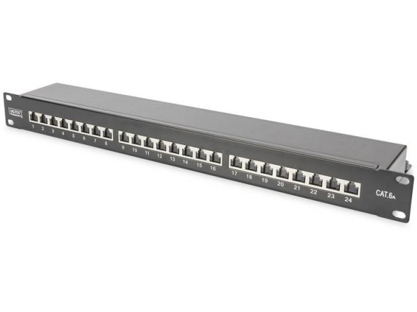 Das DIGITUS® "DN-91624S-EA" CAT 6A Patch Panel ist erhältlich in der 24-Port Version und stellt mit dem 1,5 mm galvanisiertem kaltgewalzten Stahl ein robustes Patch Panel für die 19" Schrankmontage dar. Es entspricht dem 802.3at PoE+ und dem 802.3af PoE Standard und ist mit Staubschutzklappen ausgestattet.
