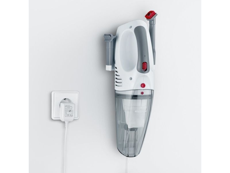 The SEVERIN S'POWER home & car Li 20 HV 7144 vacuum cleaner combines versatility and convenience for effortless cleaning. This handheld vacuum features a bagless design with a dust capacity of 0.2 liters, allowing for easy emptying and maintenance. Equipped with a washable filter, this vacuum is suitable for both dry and wet cleaning methods, making it perfect for tackling various messes in your home or car. With an operating autonomy of 18 minutes and powered by rechargeable lithium-ion batteries, this device ensures adequate time to clean before needing a recharge. Included with the vacuum cleaner are handy accessories like a car power adapter, a wall bracket with a built-in power adapter, a rubber nozzle, and a 2-in-1 brush and crevice tool. These accessories enhance the functional capability of the vacuum, enabling it to reach tight spaces and handle different surface types. The charging indicator keeps users informed about the battery status, ensuring seamless cleaning sessions without interruptions.