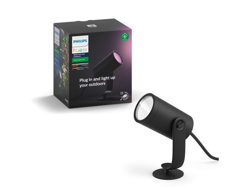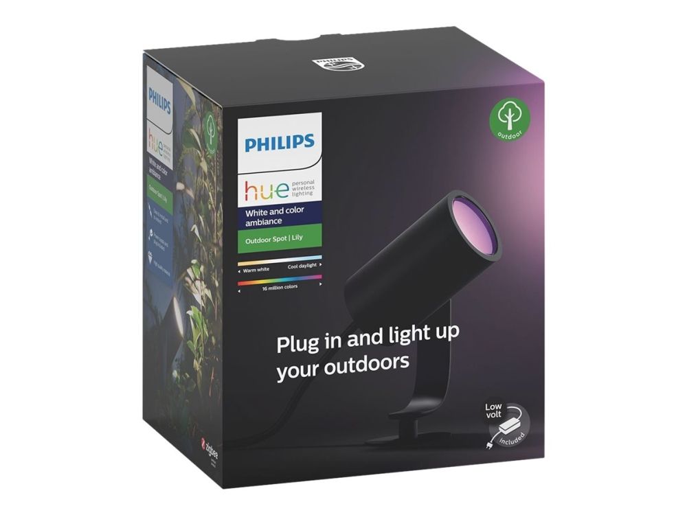 Philips Hue White and Color ambiance Lily Outdoor Spot Basis-Set schwarz, Intelligente Hängeleuchte, Schwarz, LED, Nicht austauschbare(s) Leuchtmittel, Weiß, 2000 K