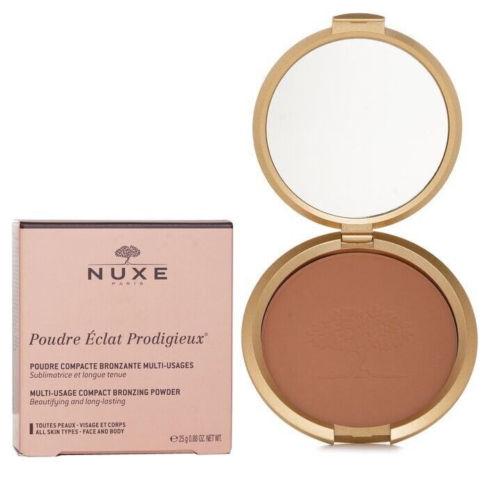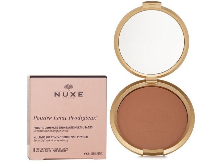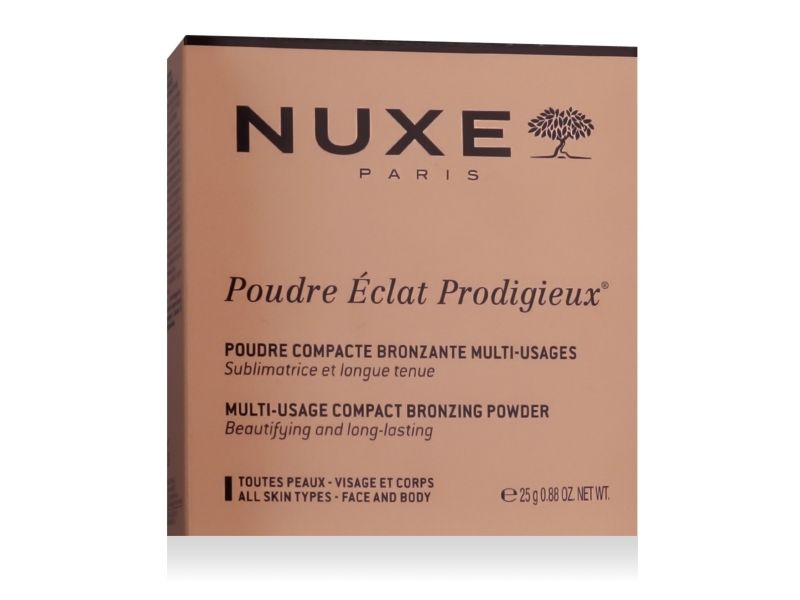 | Nuxe Poudre Éclat Prodigieux Bronzing Powder 25 g Luxuriöses, vielseitig einsetzbares Bronzing-Puder, das Gesicht und Körper einen wunderschönen, sonnengeküssten Glanz verleiht. Die seidig-weiche Textur ist für alle Hauttypen geeignet und hinterlässt ein natürliches, strahlendes Finish. Es sorgt für einen sonnengeküssten, warmen Effekt ohne Schimmer und kann sowohl zum Konturieren als auch als Bronzer oder für einen gesunden Hauch von Farbe im Gesicht und am Körper verwendet werden. Anwendung: Mit einem großen Puderpinsel auf Gesicht und/oder Körper auftragen – z. B. auf Wangenknochen, Stirn und Schultern – für einen natürlichen, sonnengeküssten Glanz. Kann je nach gewünschtem Effekt in der Intensität aufgebaut werden. |