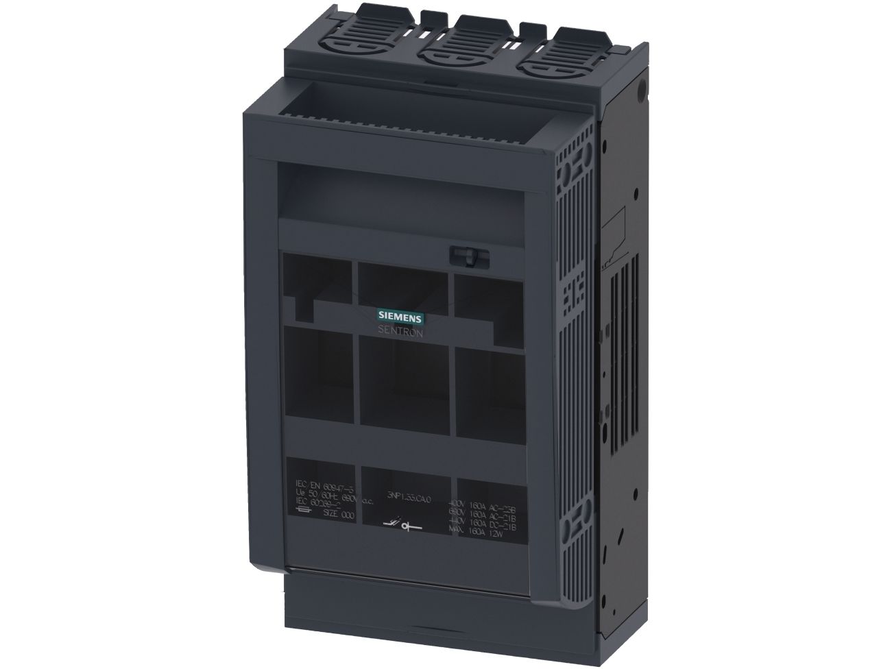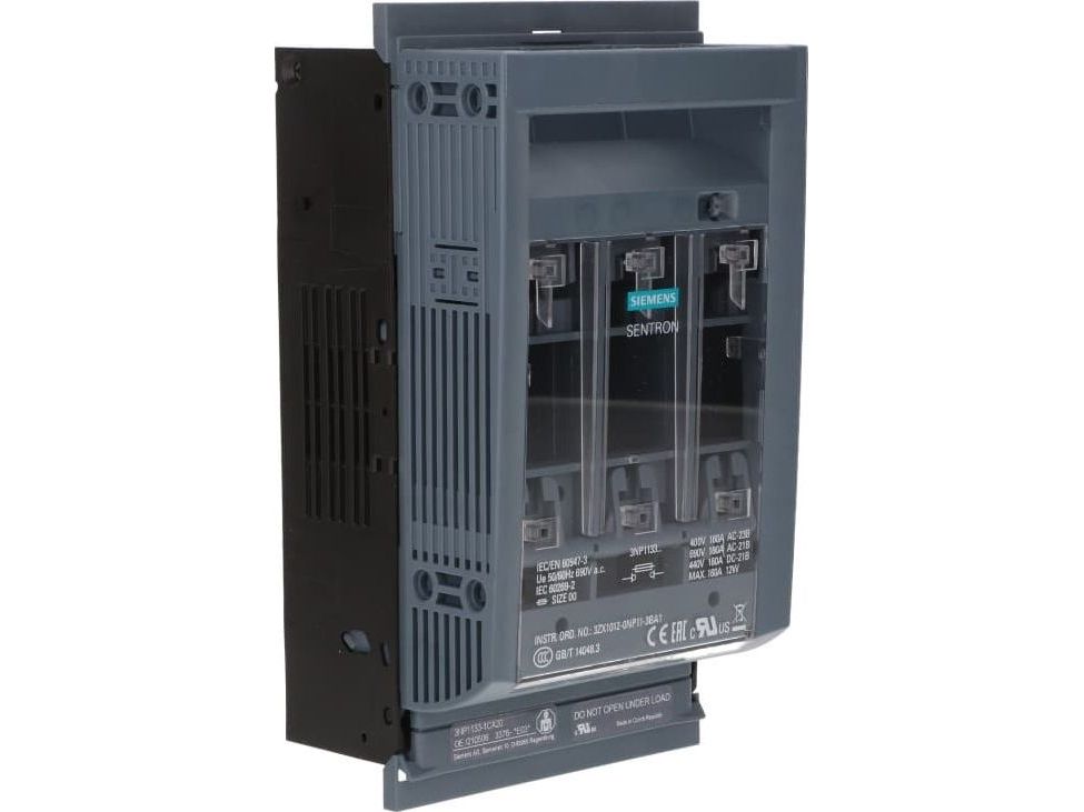 Sikringsbelastningskontakt 3NP1, 3-polet, NH00, 160 A, til opbygning og... SENTRON., sikkerhedbelastningsskillekontakt 3NP1, 3-polet, NH00, 160 A, Til opbygning og montering på monteringsplade, rammeklemme, afdækningsniveau 45mm sikringslastafbryder 3NP til 630 A med forbedret person- og anlægsbeskyttelse og komfortabel tilslutningsteknik. Sikringsbelastningskontakten beskytter anlæg i industrien eller infrastrukturen mod overbelastning og kortslutning og er egnet til anvendelse i flere sektorer. Den standardmæssigt medfølgende omslutnings- og berøringsbeskyttelse af den nye SENTRON.-serie 3NP1 forhindrer brugeren ved montering af kollektive skinnesystemer strømførende dele, selv ved adgang på bagsiden. Desuden kan brugeren nemt registrere de anvendte sikringer med den store rude. Siemens sikrings-lastskilleafbryderen 3NP udmærker sig især ved: 1. Meget fleksibel pga. modulopbygning og gennemgående tilbehør. 2. Egnet til fastgørelse på jorden, din-skinne og Siemens samleskinnesystemer 8US 3. E