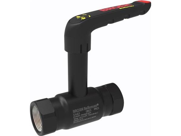 BROEN Ballomax Stahlkugelhahn, DN20, Muffe 3/4'' x Muffe 3/4'', PN25, Full Flow, massive Edelstahlkugel, hoher Schaft, schwarz pulverbeschichtet, Stahlgriff mit glasfaserverstärktem Nylonschutz