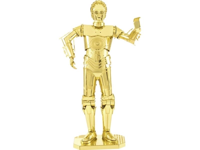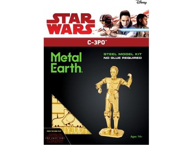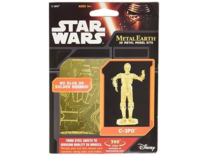 metal Earth C-3PO gold metal Earth - vom Stahlblech zum 3D-Metallbaukasten - einfach lasergeschnittene Teile aus der Metallkarte (11 x 11 cm) ausdrucken und ohne Klebstoff zusammenbauen. Jedes Modell zeigt erstaunliche Details. Inklusive leicht verständlicher Bauanleitung. Eine Pinzette und Zange erleichtert den Zusammenbau der Modelle. Für junge und erwachsene Bastler - kein Spielzeug.