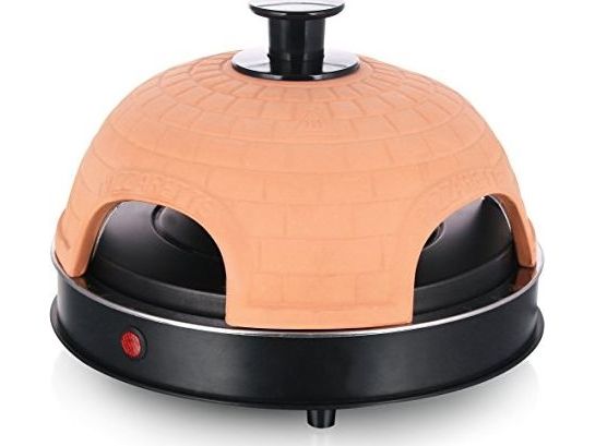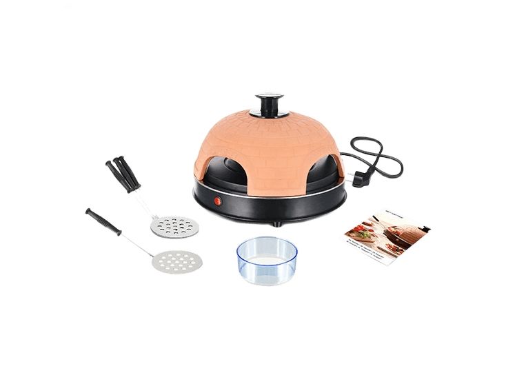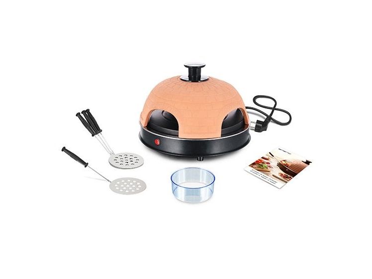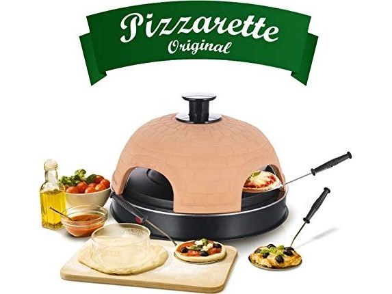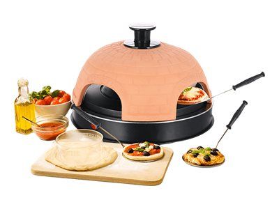 Pizzarette Backen Sie Ihre eigenen Mini-Pizzen Handgefertigte Terracotta-Haube 4 Isolierte Backspachtel Emaillierter Backblech Pizzateigschneider Kontrollleuchte Entspricht GS A13 Standard Cool Touch