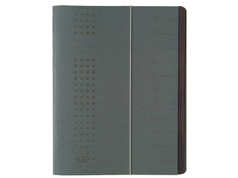 - Fächer mit Blankotaben - Vorderdeckel mit Tabaufdruck und Feineinteilungen zum Beschriften - Sicherung durch Spanngummi - Mit Verschluss - Einband aus Karton (RC), 450 g/m - Für A4 - Größe: 250 x 315 mm (B x H) - 7 Fächer