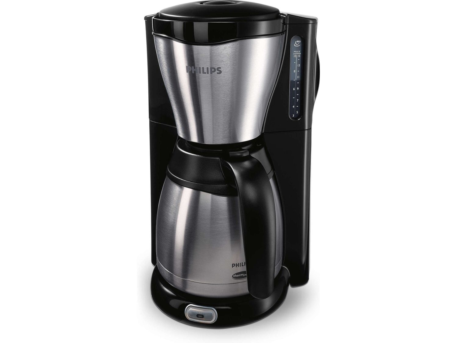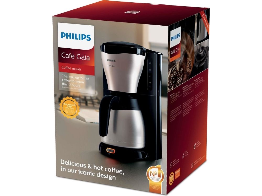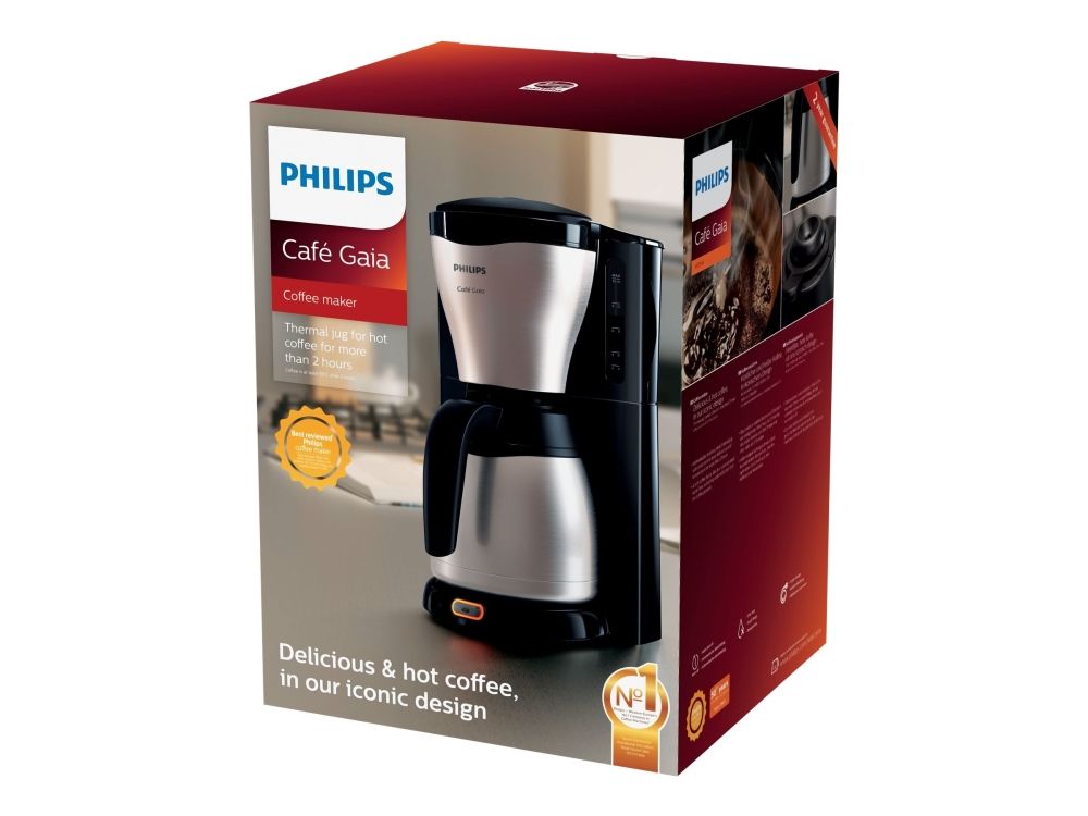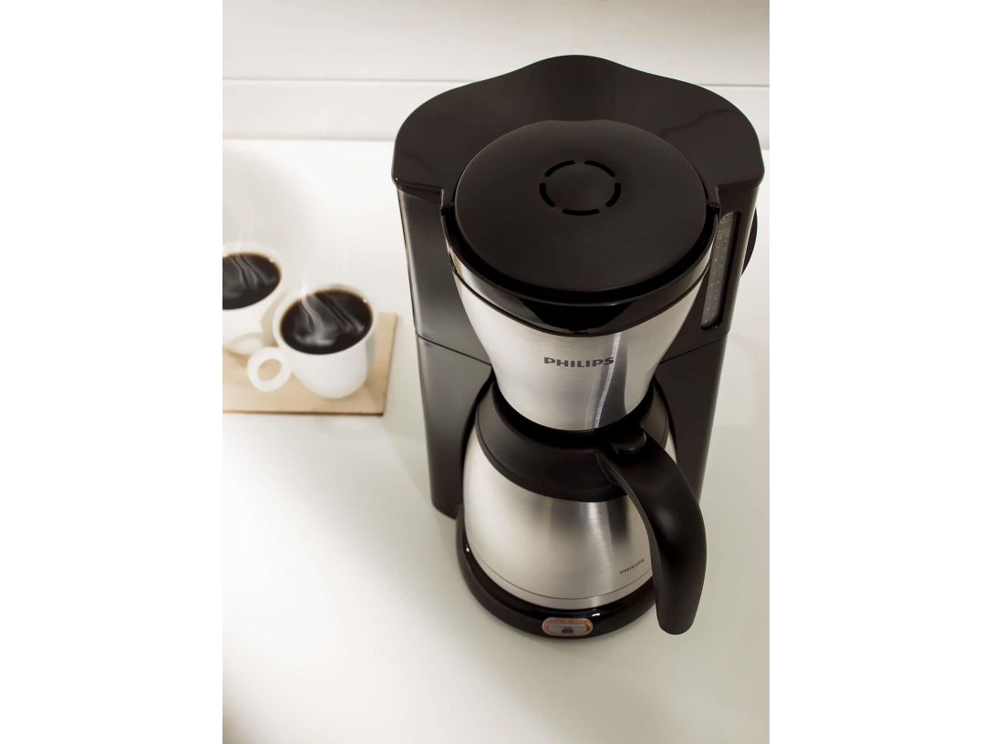 Philips HD7548. Product type: Drip coffee maker, Water tank capacity: 1.32 L, Coffee input type: Ground coffee, Reservoir for brewed coffee: Jug, Capacity in cups: 15 cups. Display type: TFT. Power: 1100 W. Product colour: Black, Metallic