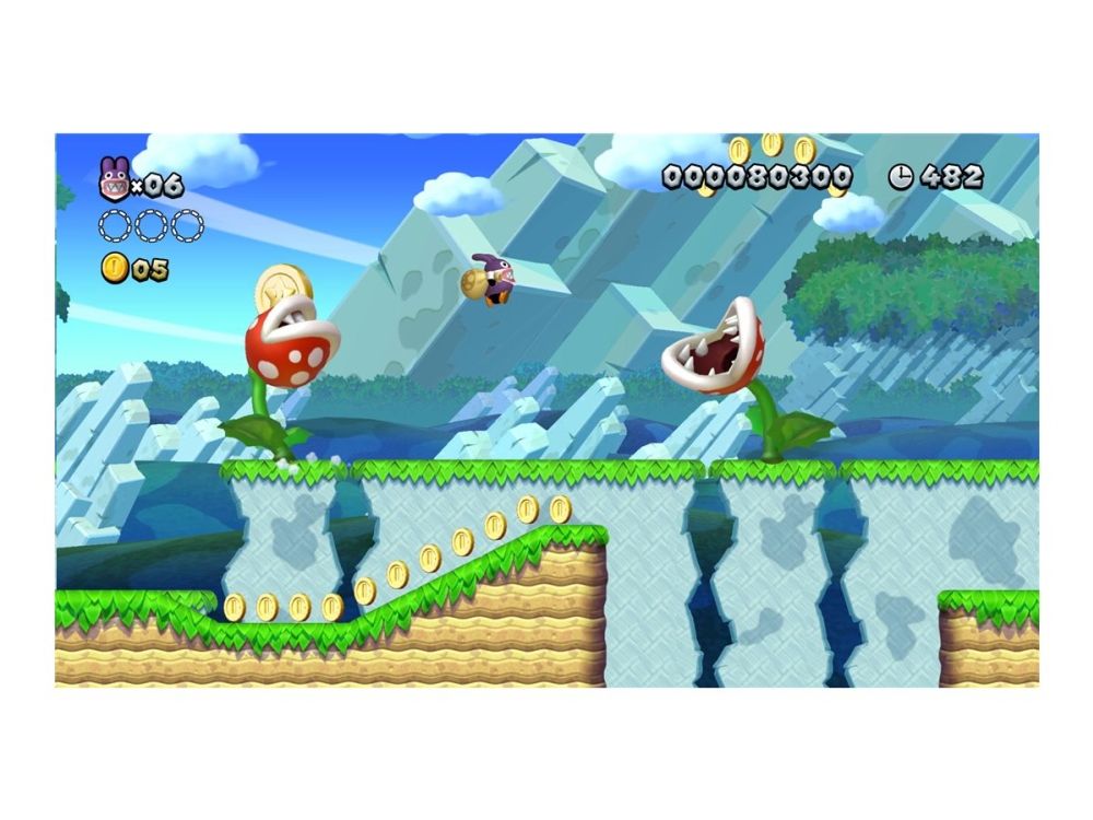Take on two family-friendly, side-scrolling adventures with up to three friends as you try to save the Mushroom Kingdom. Includes the New Super Mario Bros. U and harder, faster New Super Luigi U games - both of which include Nabbit and Toadette as playable characters!