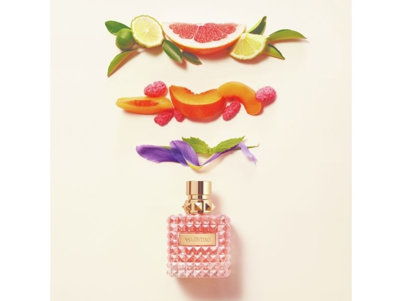 Valentino Donna is luminous and sensual: its floral oriental fragrance revolves around a contrast of noble ingredients. Rose essence, generously blended with notes of bergamot and iris Pallida, illuminates the fragrance with refined radiance. Warm, intense notes of leather, blended with patchouli and vanilla, express an exquisite sensuality. The glass surface of the bottle is entirely cut in prisms that resemble studs, but could also be the ashlar masonry of an Italian palazzo.