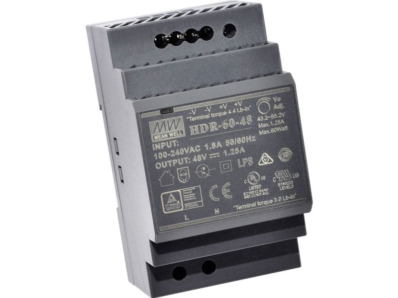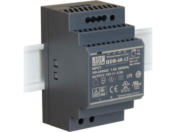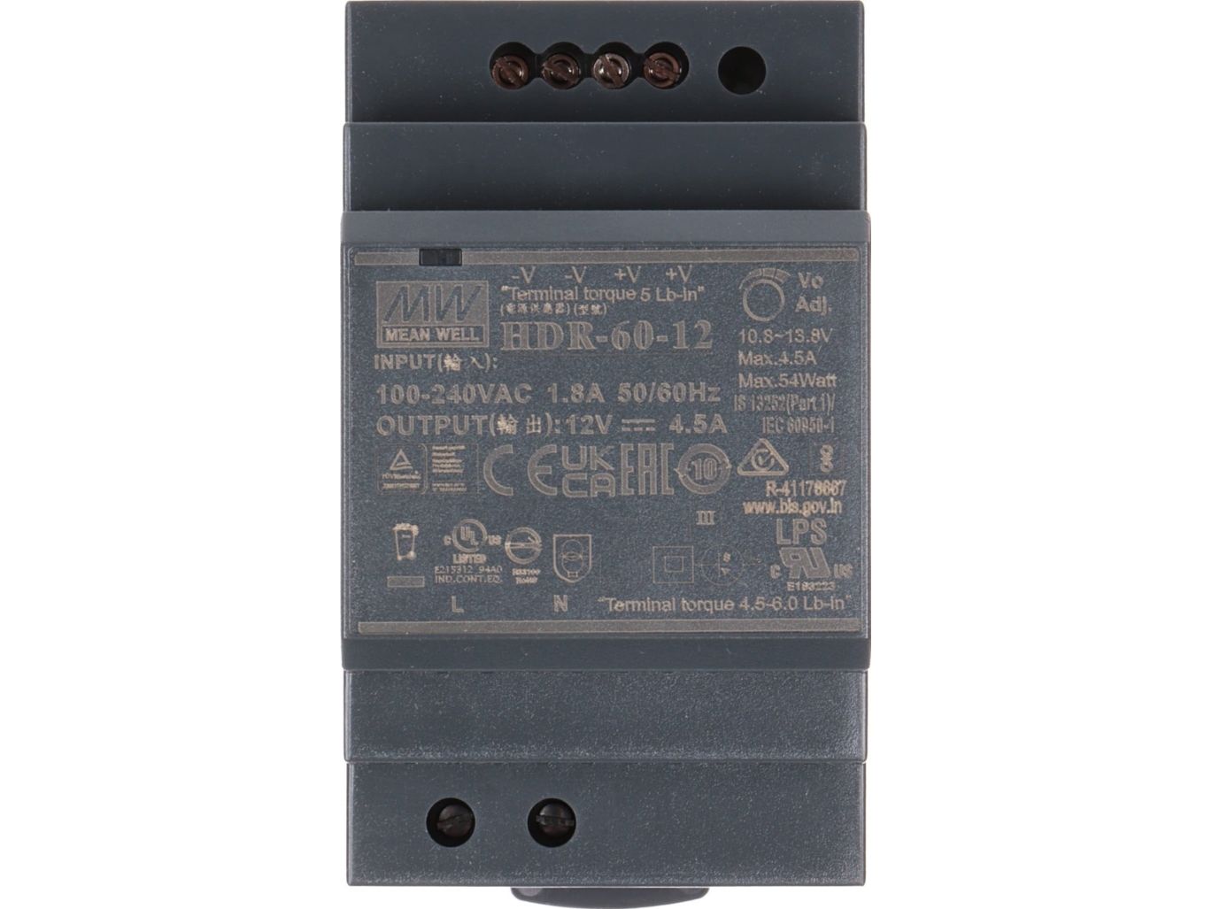 MEAN WELL HDR-60-12, 85 - 264 V, 60 W, 12 V, 4,5 A, RoHS, 52,5 mm