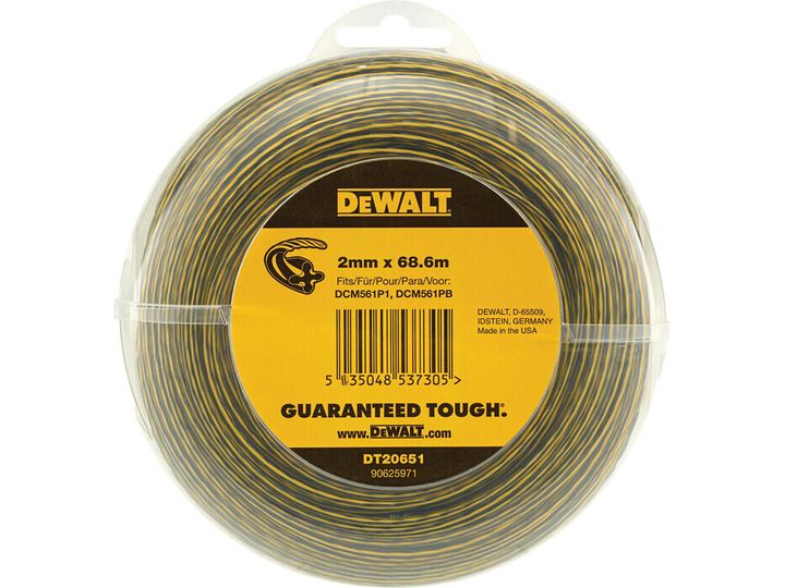 DeWALT DT20651 grass trimmer line is designed for efficient grass trimming and maintenance. With a diameter of 2 mm, it offers durability and strength for cutting through tough grass and weeds. The total length of 68.6 m ensures that users have ample line to complete multiple tasks without interruptions. This trimmer line is suitable for various trimmer models, providing versatility and reliability. Its robust construction helps withstand wear and tear, ensuring consistent performance even in challenging environments. Ideal for both residential and commercial use, this grass trimmer line supports effective landscaping with ease.