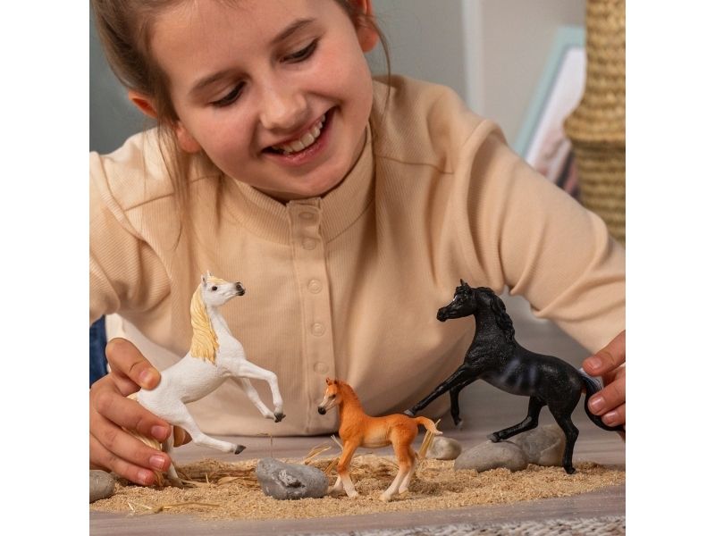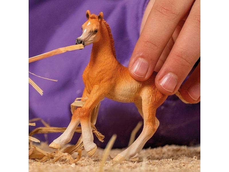 Something's going on back there! The little Arabian Foal certainly doesn't want to miss it! Although it comes from the most noble breeding stock, the little thoroughbred doesn't have the slightest desire to behave like nobility. On the contrary, the Arabian Foal is extremely curious and playful. That's why it pricks up its little ears attentively and has already trotted off for an adventure. On long legs it gallops across the pasture. It looks so graceful that it is sure to become a successful racehorse one day.