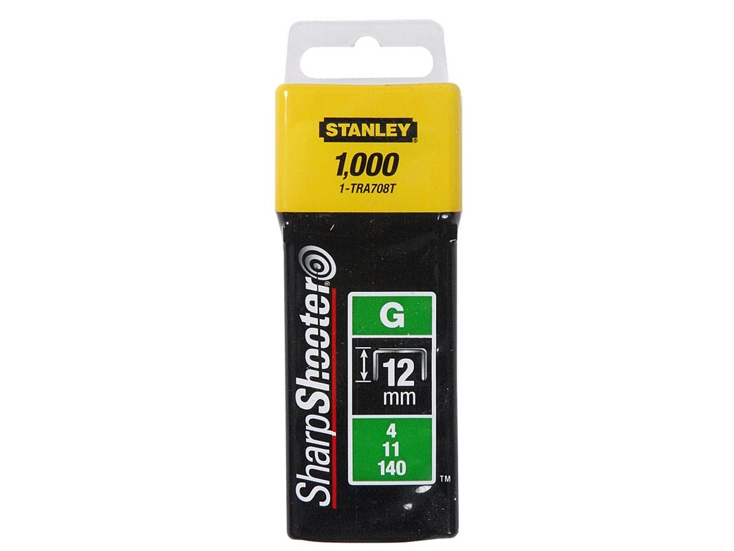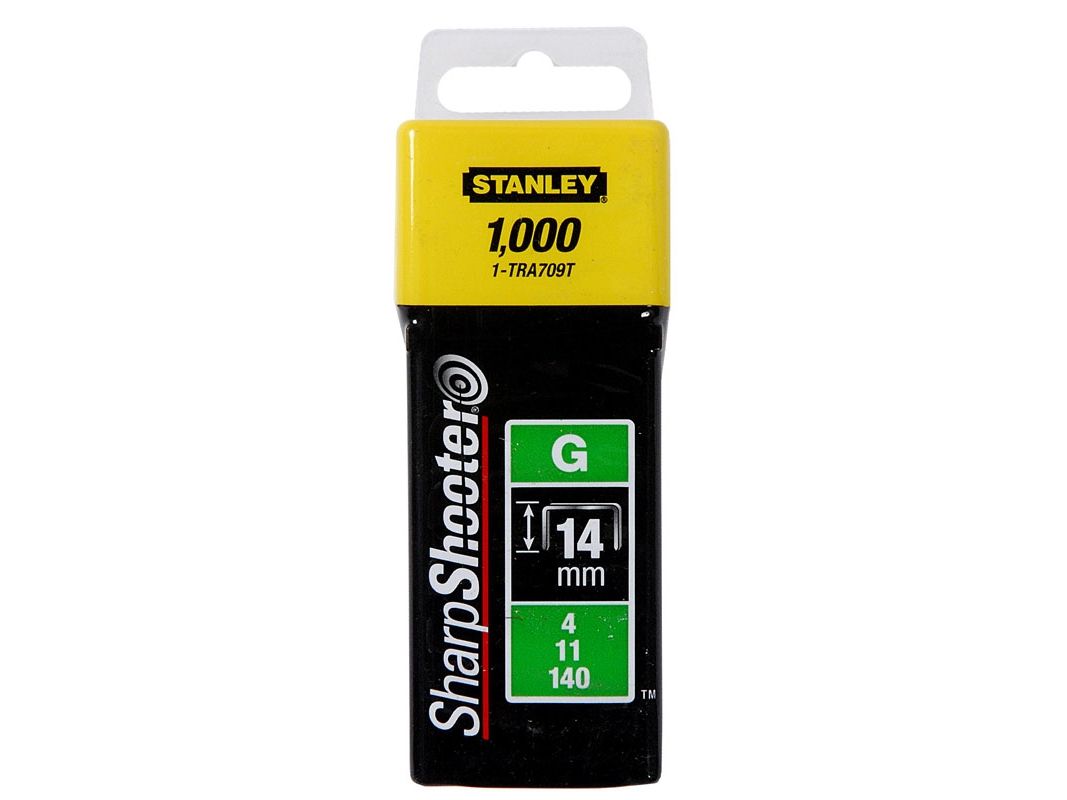 Stanley Heavy Duty Staples - Type G 4/11/140. Product type: Clamp, bolt & nail assortment, Number of staples included: 1000 pc(s), Staple width: 1 cm. Package weight: 73 g
