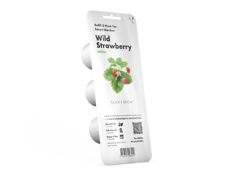 Experience the delight of picking your sweet sun-kissed strawberries from your kitchen with the Grow Smart Garden Refill 3-pack - Wild Strawberry. Eat them fresh add them to your desserts or turn them into jams all while enjoying their numerous health benefits. With Click and Grow indulge in the freshness of strawberries any time of the year.Sweetness Year-Round - Enjoy fresh succulent strawberries regardless of the season.Easy home Growing - Cultivate wild strawberries effortlessly with Click and Grow technology.Garden-to-Plate Experience - Experience the entire journey of your strawberries from seedling to your plate.Health and taste Combined - Unleash the full potential of wild strawberries rich in flavour and health benefits.Eco-Friendly and Convenient - Grow strawberries at home in an eco-conscious and convenient way.Sweetness Year-Round Imagine having plump flavorful strawberries at your fingertips throughout the year no matter the weather outside. The Grow Smart Garden Refill pack ensures you can enjoy these beloved fruits even when they are out of season bringing the sweet taste of summer into your home year-round. Easy Home Growing Say goodbye to the complexities of traditional gardening. The wild strawberries in this refill pack are incredibly easy to grow with your Click and Grow Smart Garden. No green thumb is required ? insert the pods add water and watch your strawberries come to life. Garden-to-Plate Experience Transform your cooking with garden-fresh produce. The Click and Grow system allows you to go from harvesting to dining quickly. Fresh strawberries can elevate your breakfasts and desserts or even make for a healthy snack all from the comfort of your kitchen. Health and Taste Combined Wild strawberries pack a punch in both flavour and nutritional benefits. These tiny fruits fight fatigue aid skin health and offer a stronger more concentrated taste than their cultivated counterparts enriching any dish or health regimen. Eco-Friendly and Convenient Cultivate your strawberries with minimal environmental impact. The Grow Smart Garden consumes less water than traditional gardening and doesn't require pesticides or herbicides. Plus growing at home reduces the carbon footprint associated with transporting food. Package includes3 Smart Garden wild strawberry plant podsProduct specificationsBiological plant name: Fragaria vescaOptimal growing temperature: 18°C ? 26°CSprouting time: 7 - 14 daysHarvest time: 12 - 18 weeksEdible Plant