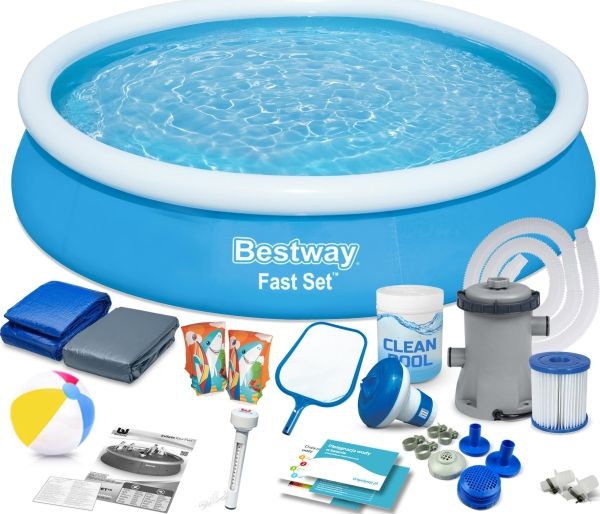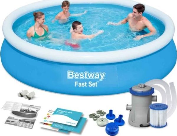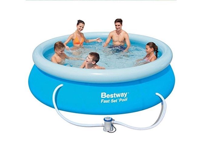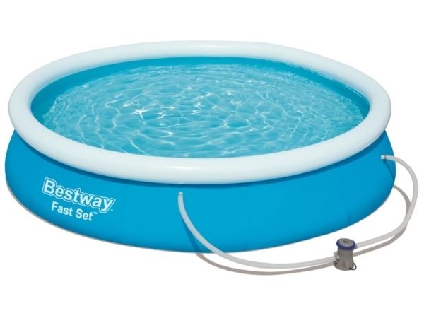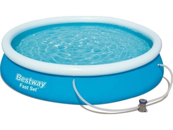 Wasserkapazität zu 80% gefüllt: 5.377 Liter Poolfolie aus robustem, 3- lagigem Material. Anschlussmöglichkeit eines Filtersystems ( 32 mm) Selbstaufbauend durch Befüllen des Pools mit aufgepumptem Luftring. EinfacherTransport Integriertes Ablassventil mit Gartenschlauchadapter. ImPool-Set enthaltenes Zubehör: · Flowclear Filterpumpe 58381 1.249 l/h · Flowclear Filterkartusche 58093 Gr. I (8,0 x 9,0 cm)