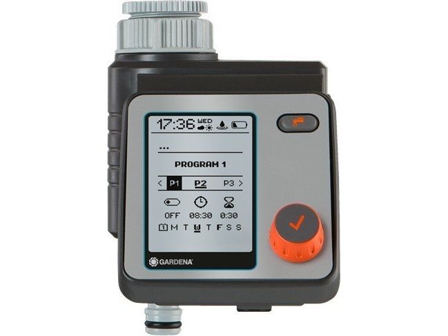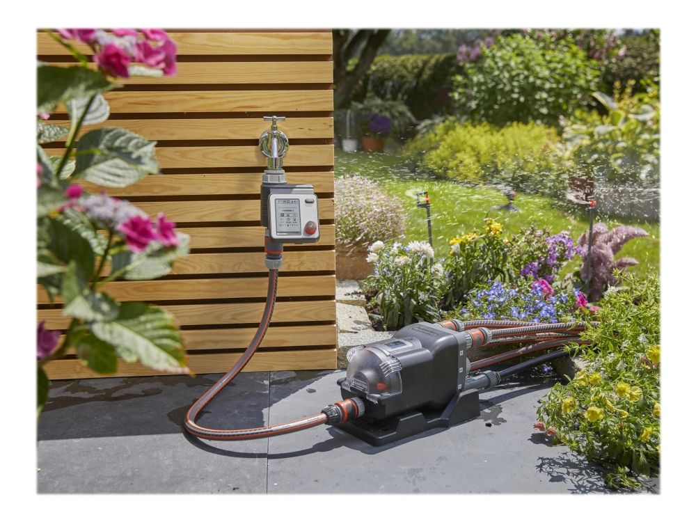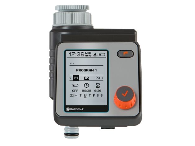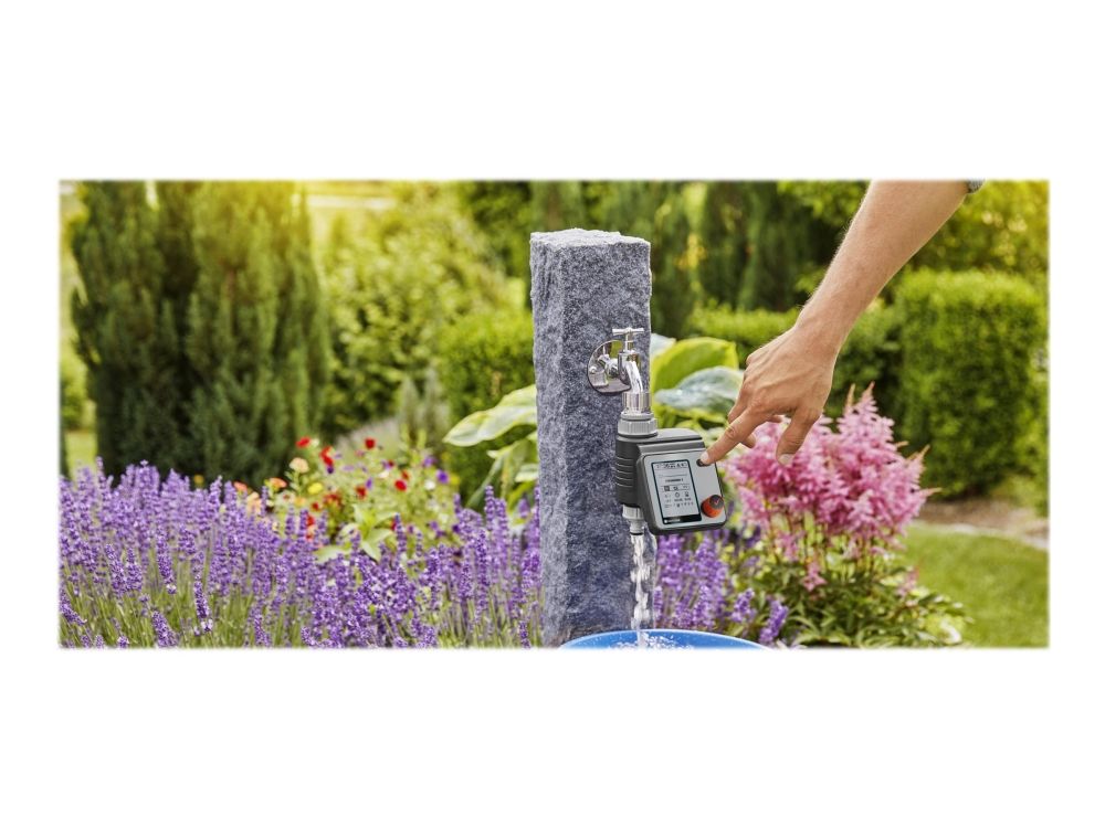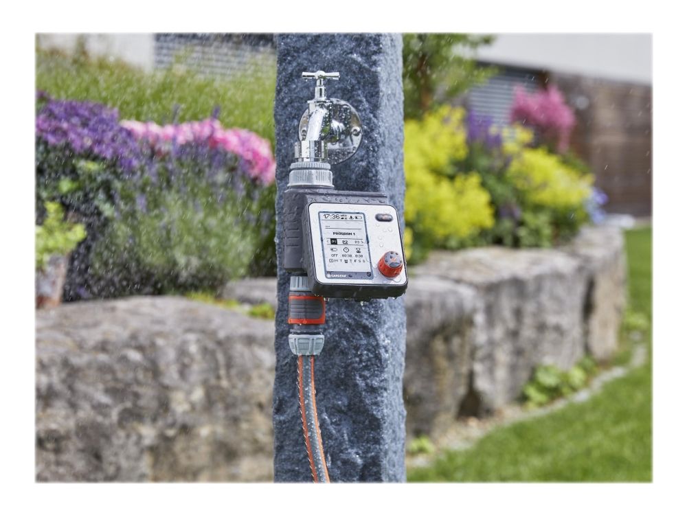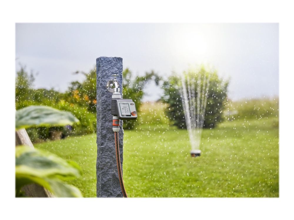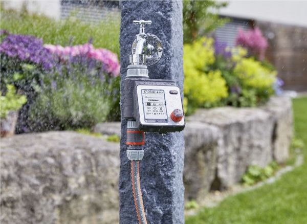 Für eine individuelle, automatische und wassersparende Bewässerung bietet Ihnen der Bewässerungskontrollmeister von GARDENA viele Möglichkeiten für die Bewässerung Ihrer Pflanzen im Garten. Automatische Gartenbewässerung bedeutet für Sie mehr Freizeit und eine optimale Wasserversorgung für Ihren Rasen, Ihre Blumenbeete oder Sträucher. Sie schließen den batteriebetriebenen Wasserregler direkt an den Wasserhahn an und verbinden den Gartenschlauch mit dem Wasserausgang. Es stehen bis zu sechs Bewässerungspläne zur Verfügung, die alle unabhängig voneinander funktionieren. Passen Sie die individuelle Bewässerungsauswahl an die Bedürfnisse Ihrer Pflanzen an. Mit dem separat erhältlichen automatischen Wasserverteiler können bis zu sechs verschiedene Anschlusseinheiten zeitgesteuert werden. Die innovative Dreh- und Drückfunktion erleichtert die Einstellung der flexiblen Zeitpläne auf dem gut lesbaren LCD-Display in zehn verschiedenen Sprachen. In wenigen Schritten lassen sich Startzeitpunkt, Dauer und Intervall der Bewässerung einstellen. Das wetterfeste Steuergerät des Gartenbewässerungssystems ist abnehmbar und der Batteriestand wird ständig angezeigt. Mit dem Bewässerungskontrollmeister passen Sie sich an Schlechtwetterphasen an und können die Bewässerungsdauer entweder zentral in 10%-Schritten reduzieren oder für 1 bis 9 Tage aussetzen. Mit der Water Now-Funktion können Sie Wasser aus dem Wasserhahn zapfen, ohne das Steuergerät abnehmen zu müssen. Dank der Safe Stop Technologie wird die nächste Bewässerung nicht gestartet, wenn die Batterieleistung schwach ist, um ein unkontrolliertes Auslaufen von Wasser zu verhindern. Wer langfristig Wasser sparen möchte, kann den GARDENA Bodenfeuchtesensor direkt an das Gerät anschließen. Der Sensor erkennt, ob der Boden noch feucht genug ist, so dass eine geplante Bewässerung nicht gestartet wird. Der Gardena Bewässerungskontrollmeister ist ein Qualitätsprodukt, made in Germany. Wassermanagement: Das komplette Portfolio innovativer Funktionen für die automatische und wassersparende Gartenbewässerung.
